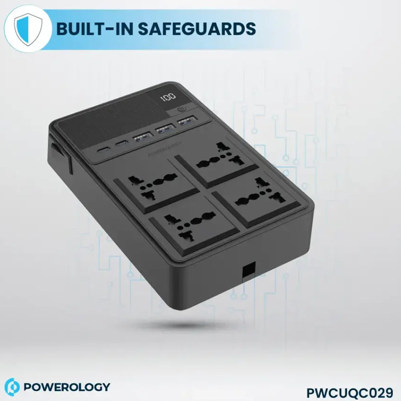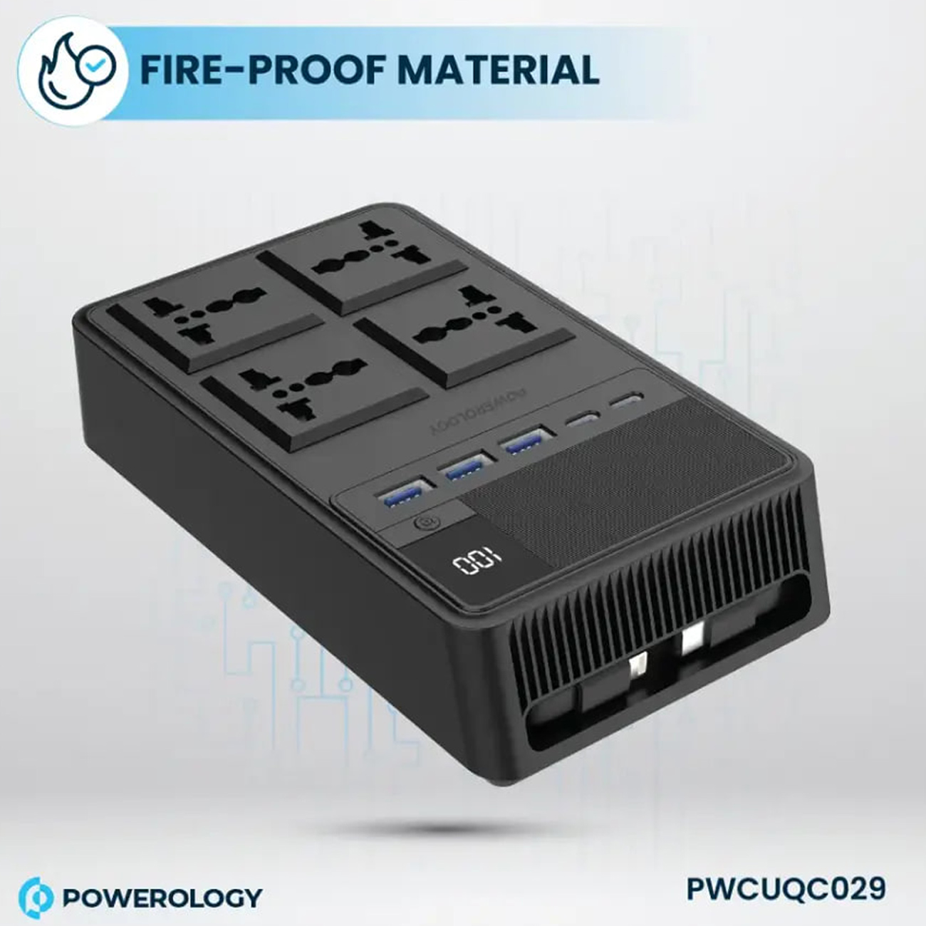 چند راهی و محافظ برق 2500 وات 4 سوکت، 3*USB و 2*تایپسی پاورولوژی PWC029