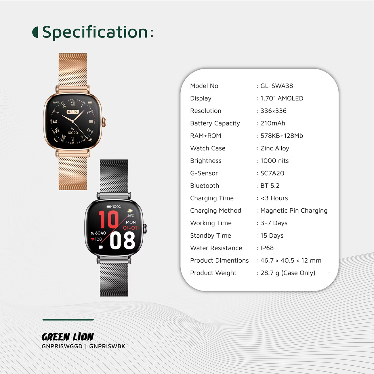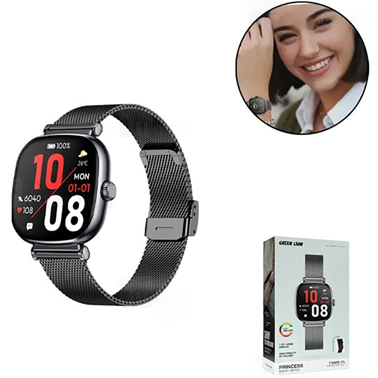 Green Lion GNPRISWGBK Princess Smart Watch