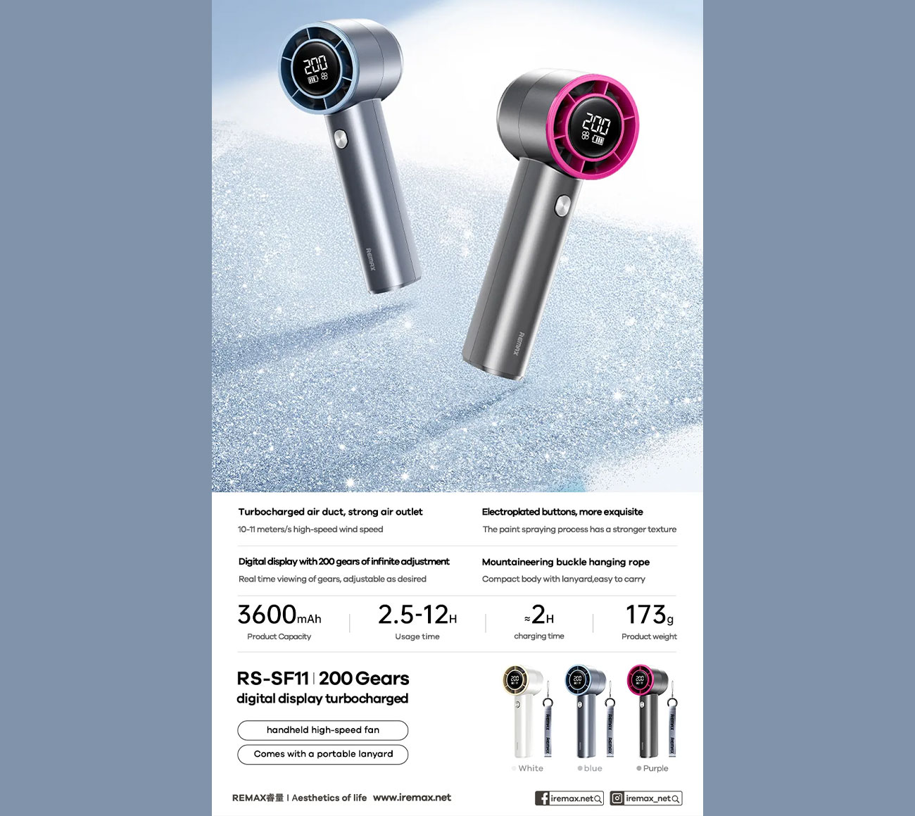 REMAX RS-SF11 Digital Display Handheld High-Speed Fan 3600mAh Battery Powered Turbo Cooling Fan