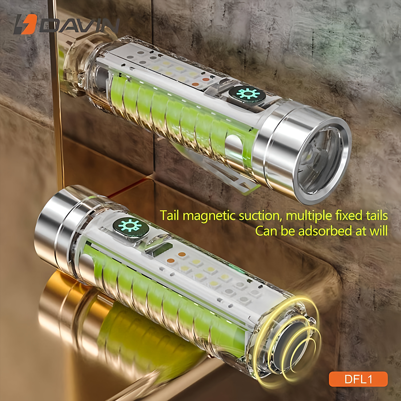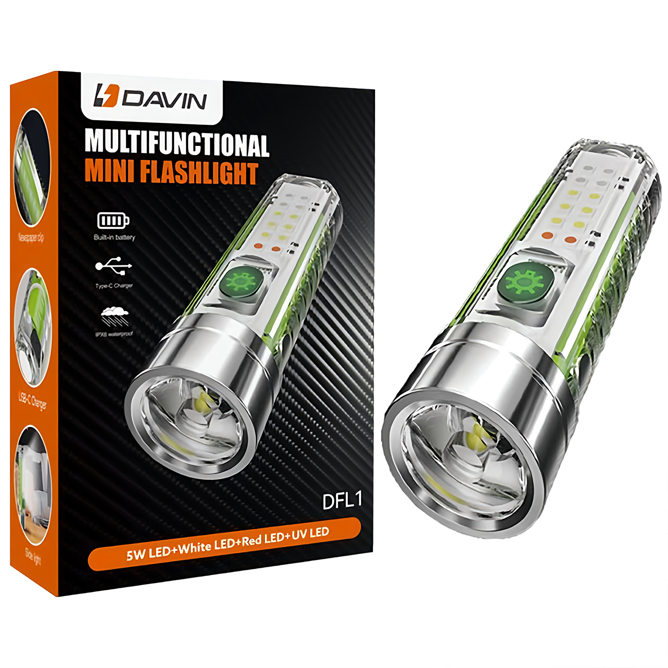 مینی چراغ قوه شارژی ضدآب با نور فرابنفش یووی داوین DFL1