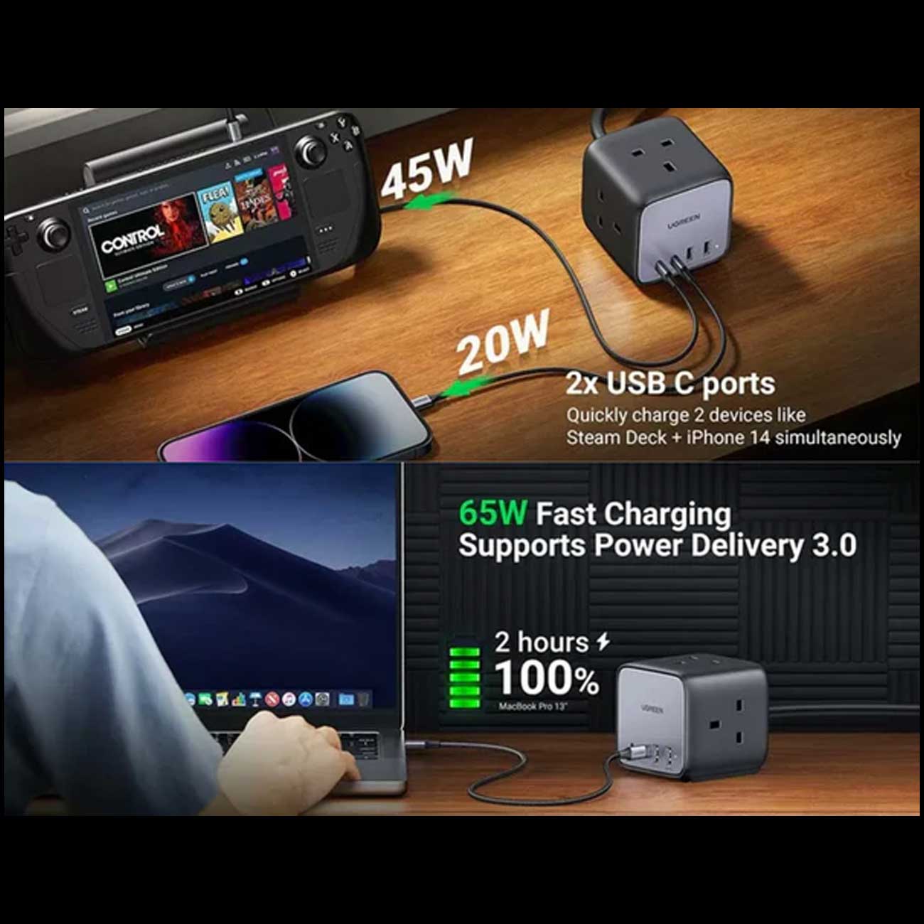 UGREEN 65W 7 Ports DigiNest Cube With UK Pin Power Strip Charging Station CD268 90906