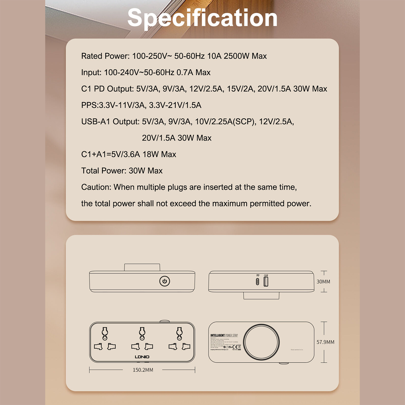 Ldnio AC Outlets Portable Extension Power Socket SC3317