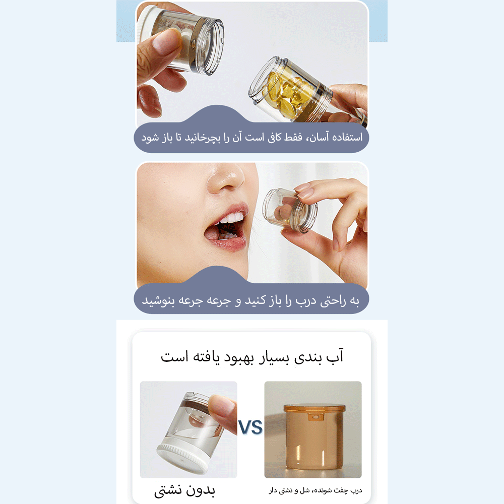 | ظرفیت هر بخش | هر بخش کوچک: حدود 7 قرص معمولی یا 60 قرص کوچک |