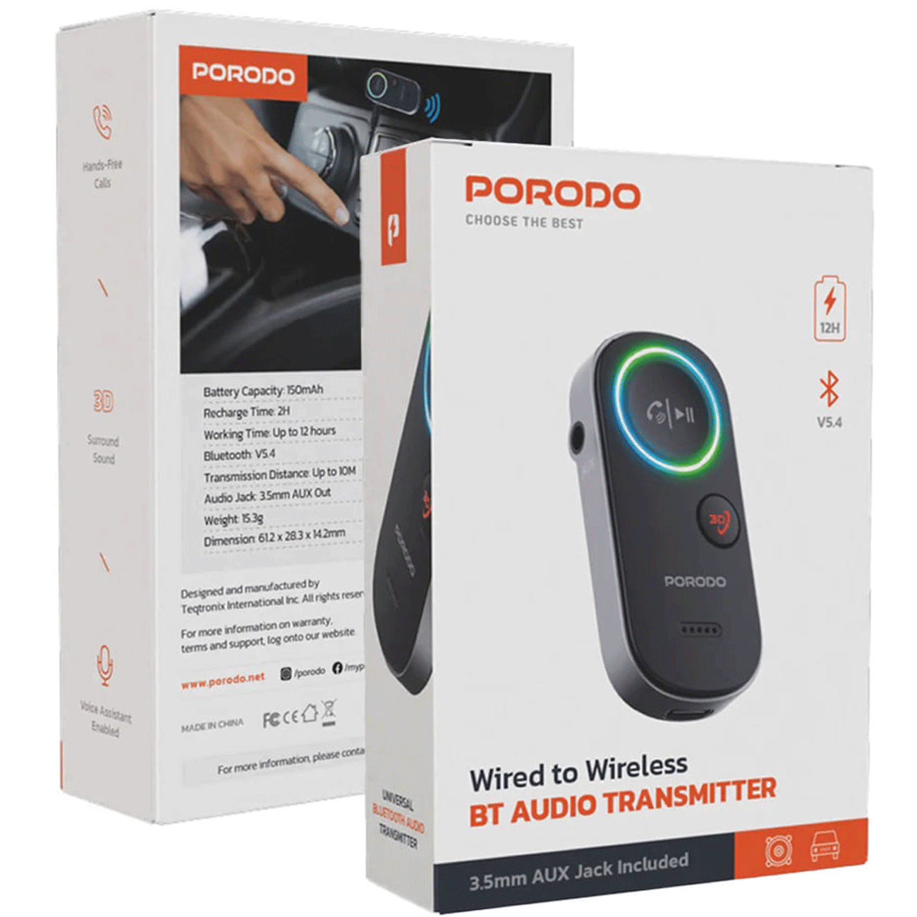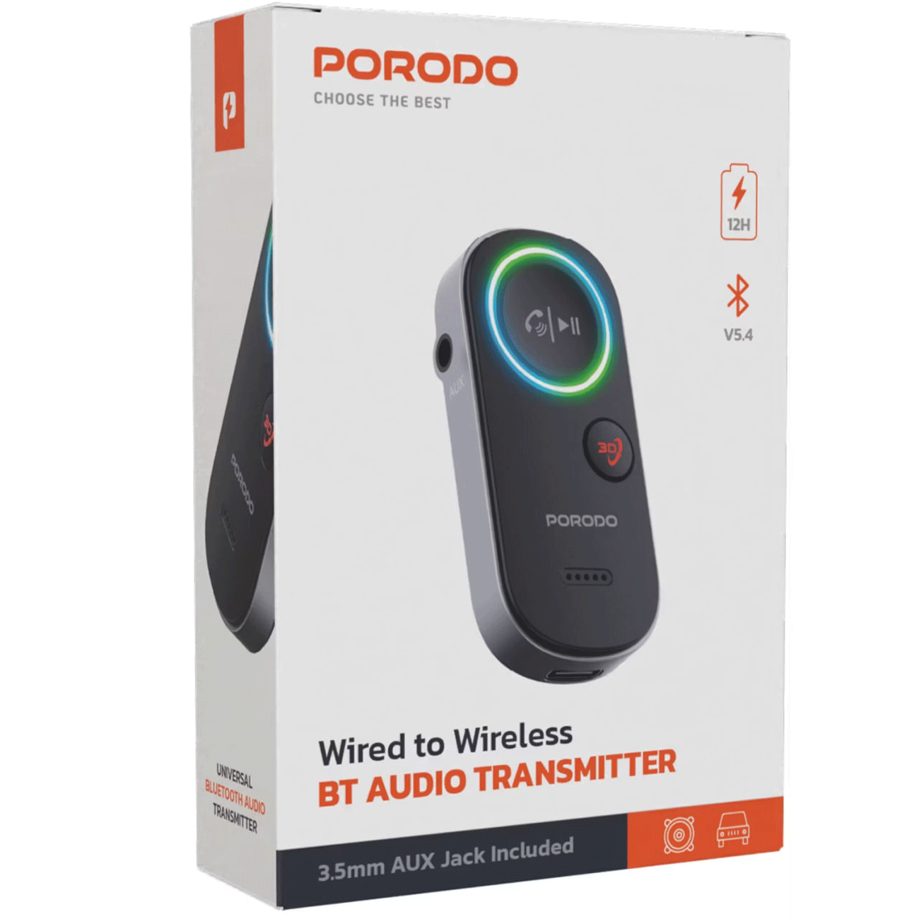Porodo PD-BTRCV-BK Wired to Wireless BT Audio Transmitter