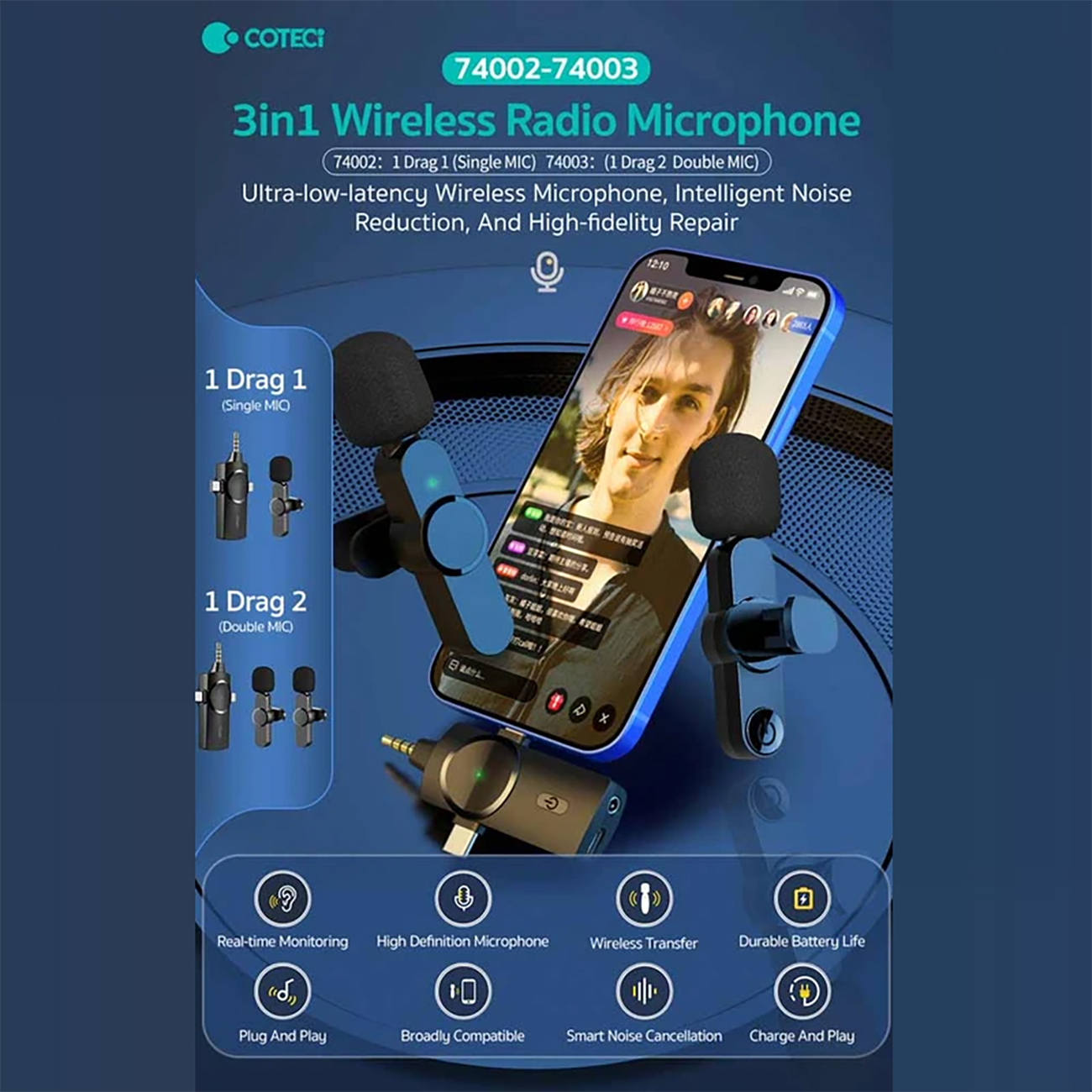 Coteetci 3in1 Wireless Radio Microphone 74002