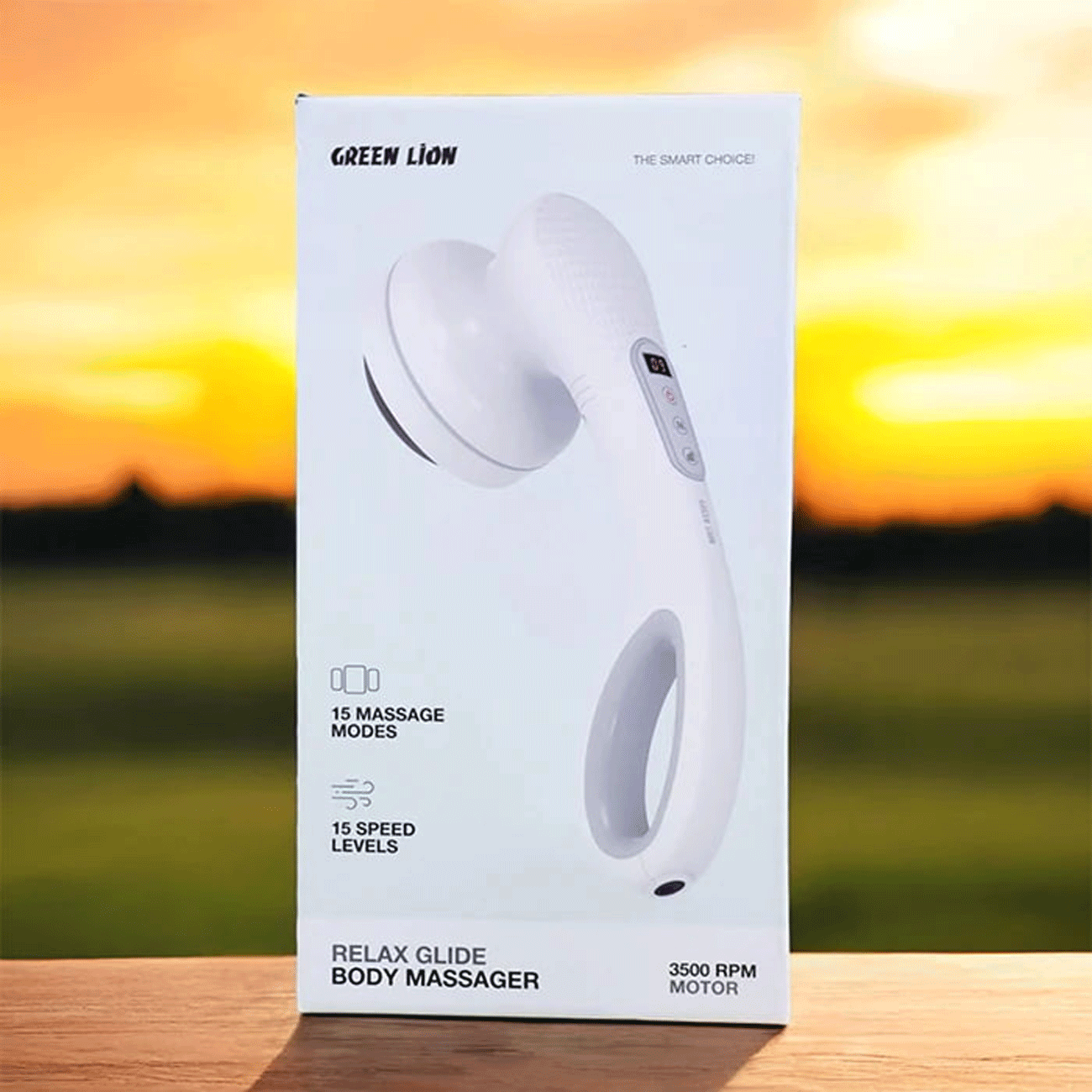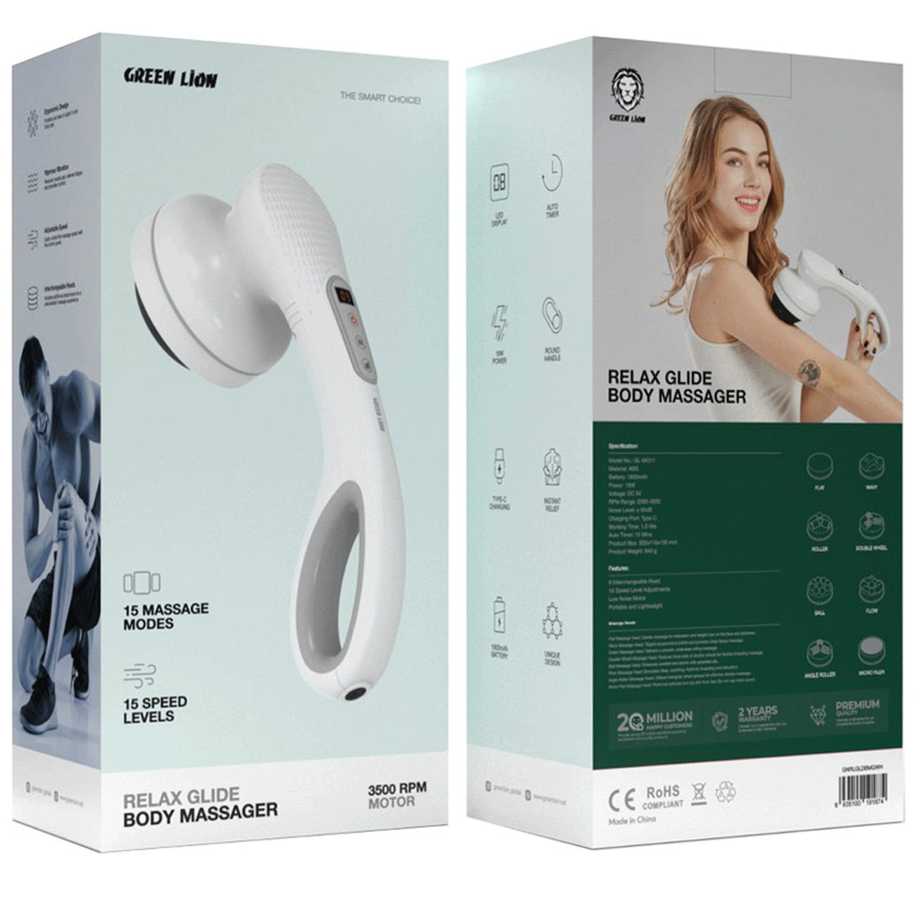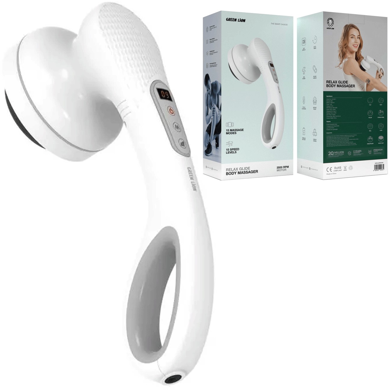 Green Lion Relax Glide Body Massager with 8 Interchangeable Heads, Type-C Charging, Round Handle, LED Display