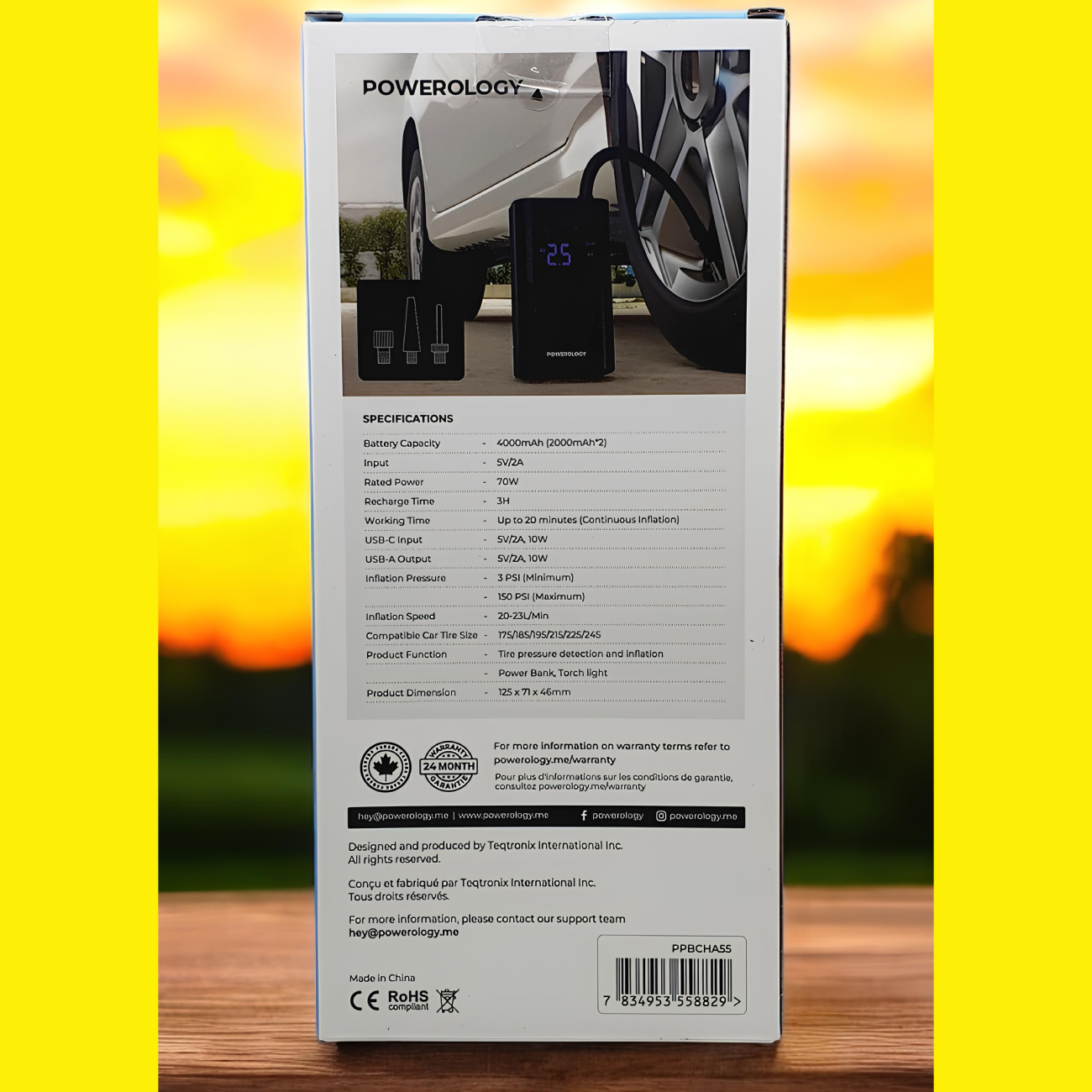 Powerology PP055 Ultra Portable Air Compressor 70W Power Bank 4000mAh PPBCHA55