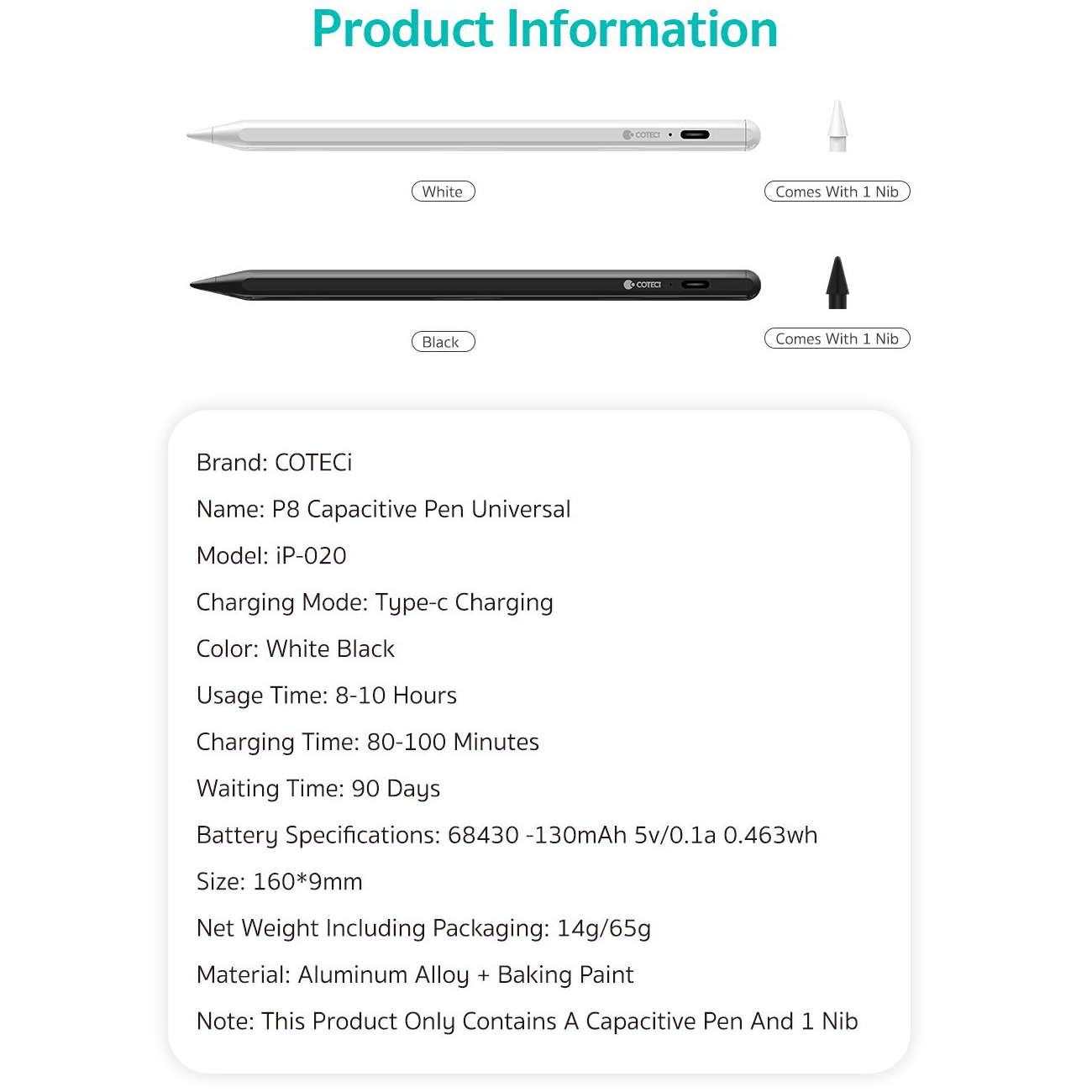 | مشخصات قلم گوشی موبایل | |