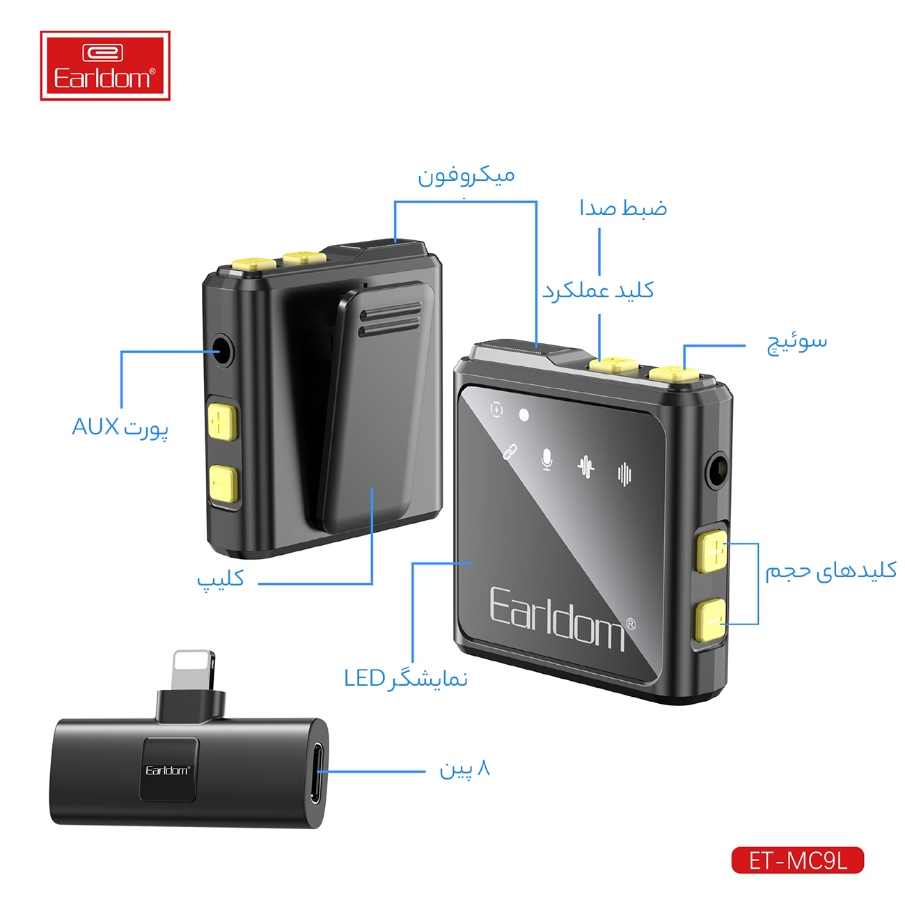 میکروفون بی سیم یقهای لایتنینگ ارلدام MC9L