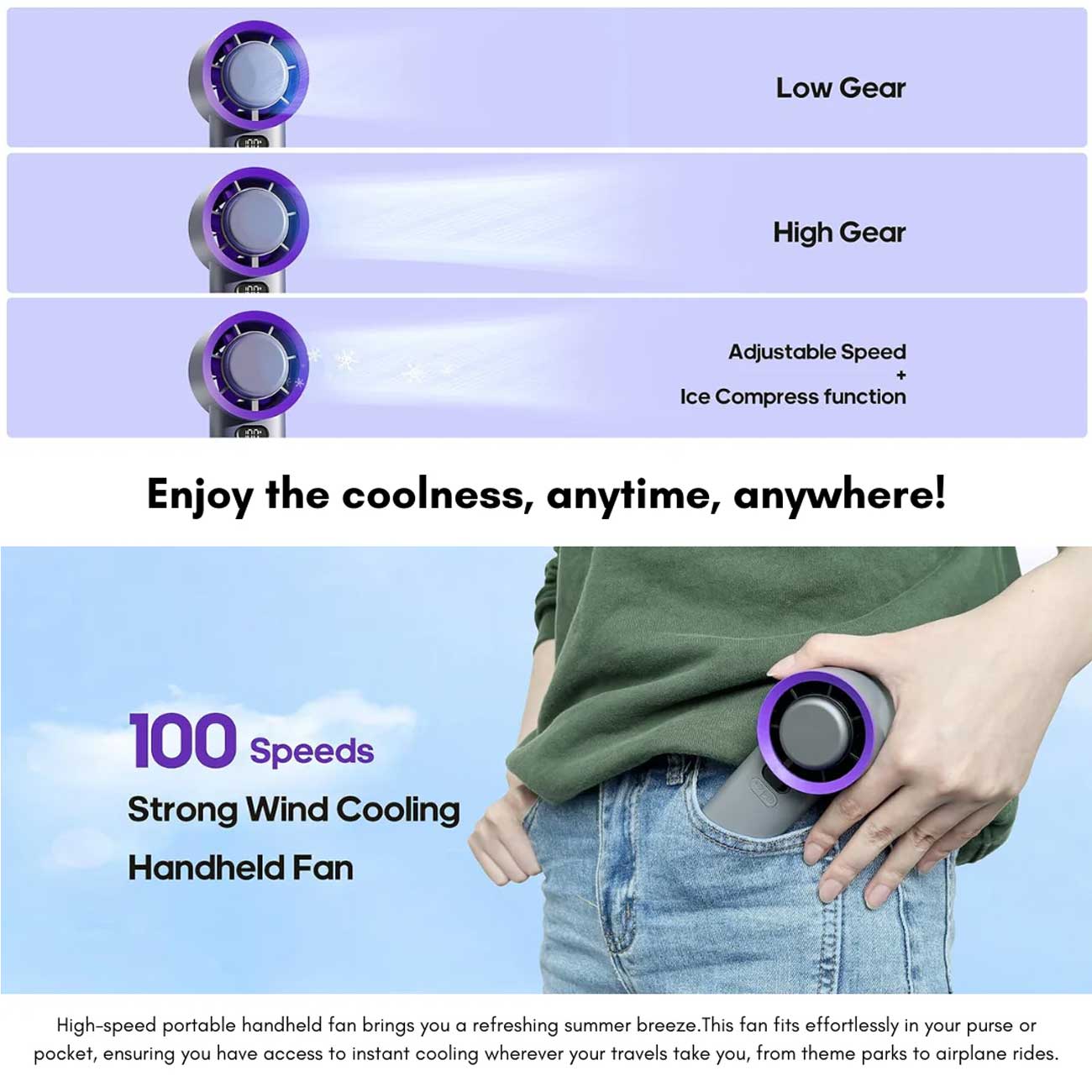 پنکه دستی شارژی 100 سرعته با باد قوی کوتسی OT-035-GY