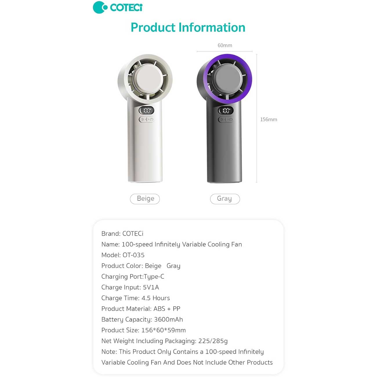 COTECI HANDHELD FAN OT35GY
