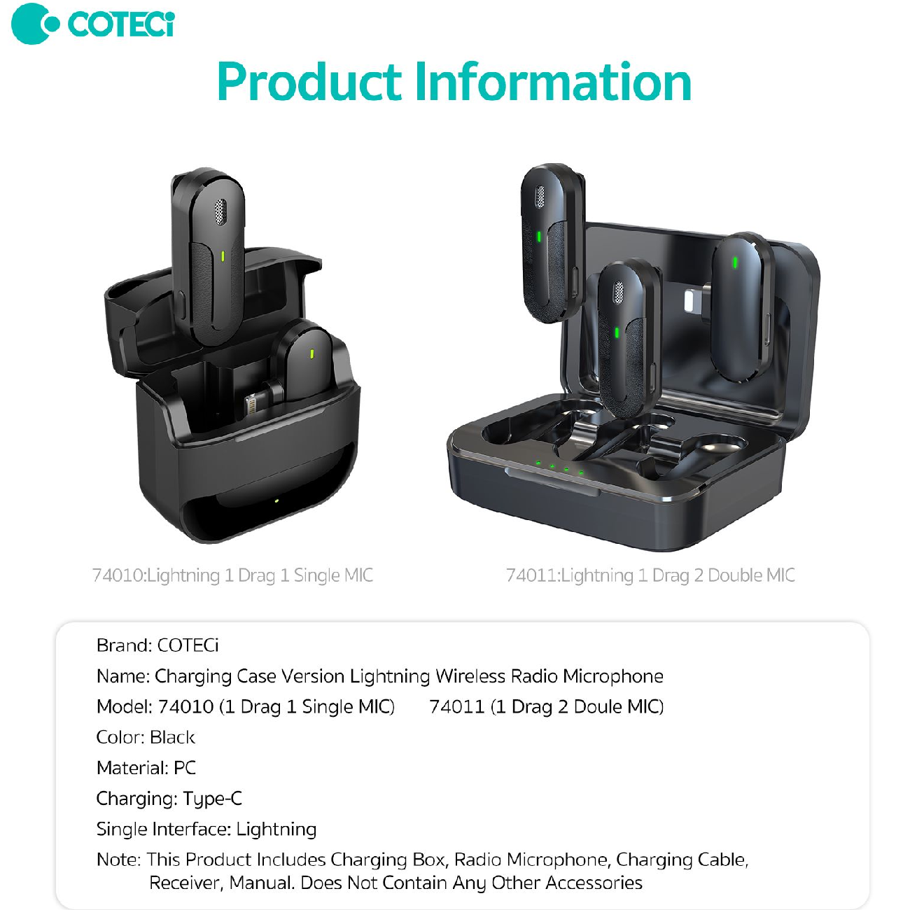 COTECi 74011 Charging Case Version Lightning Wireless Radio Microphone