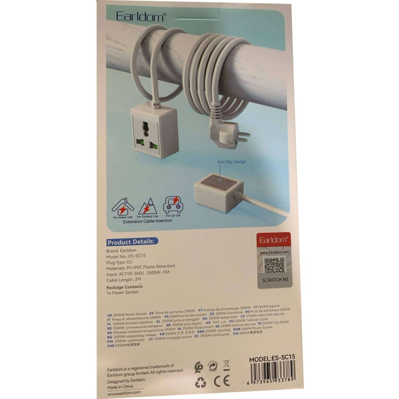 Earldom ES-SC15 Extension cord EU 1 socket 10A (2500W) 2m