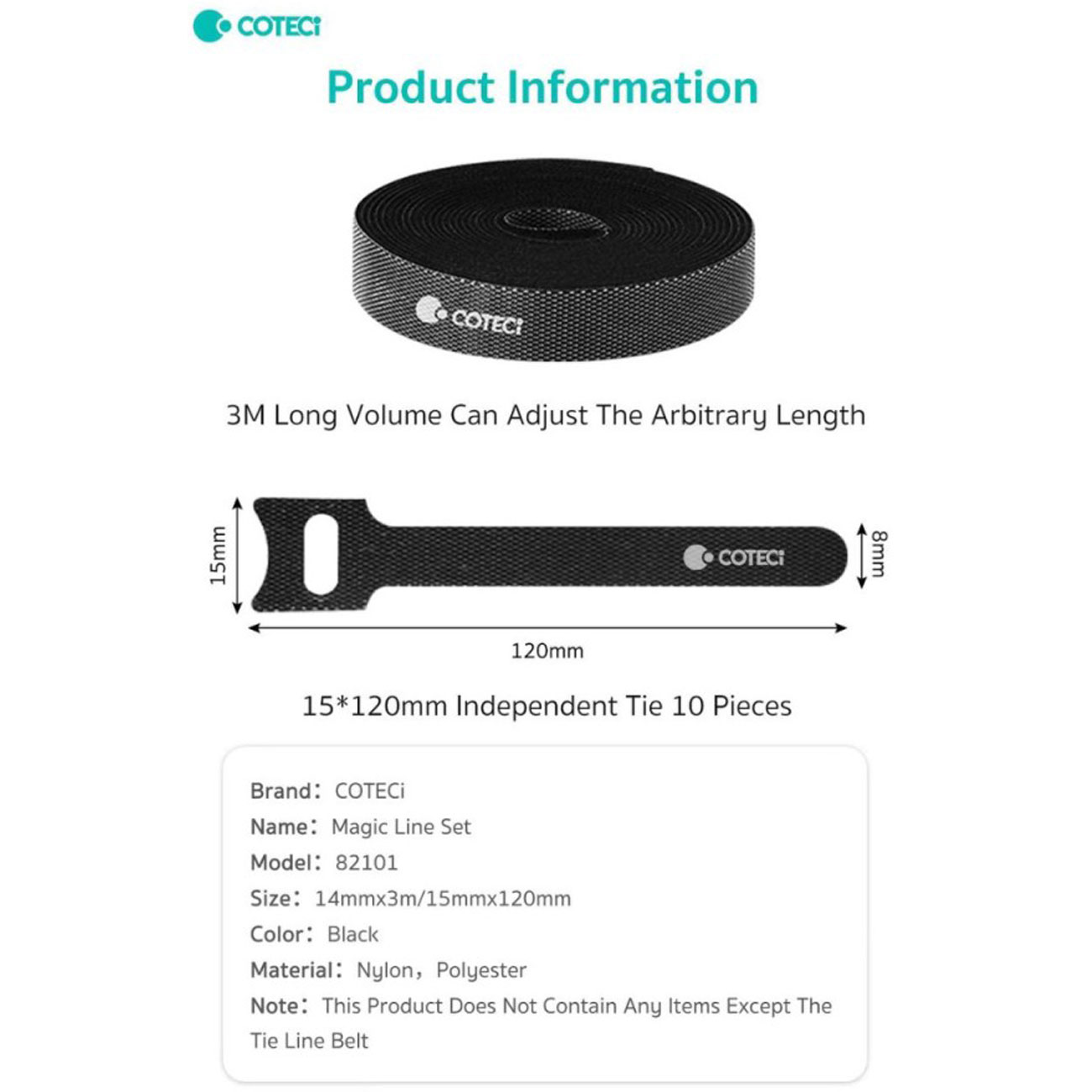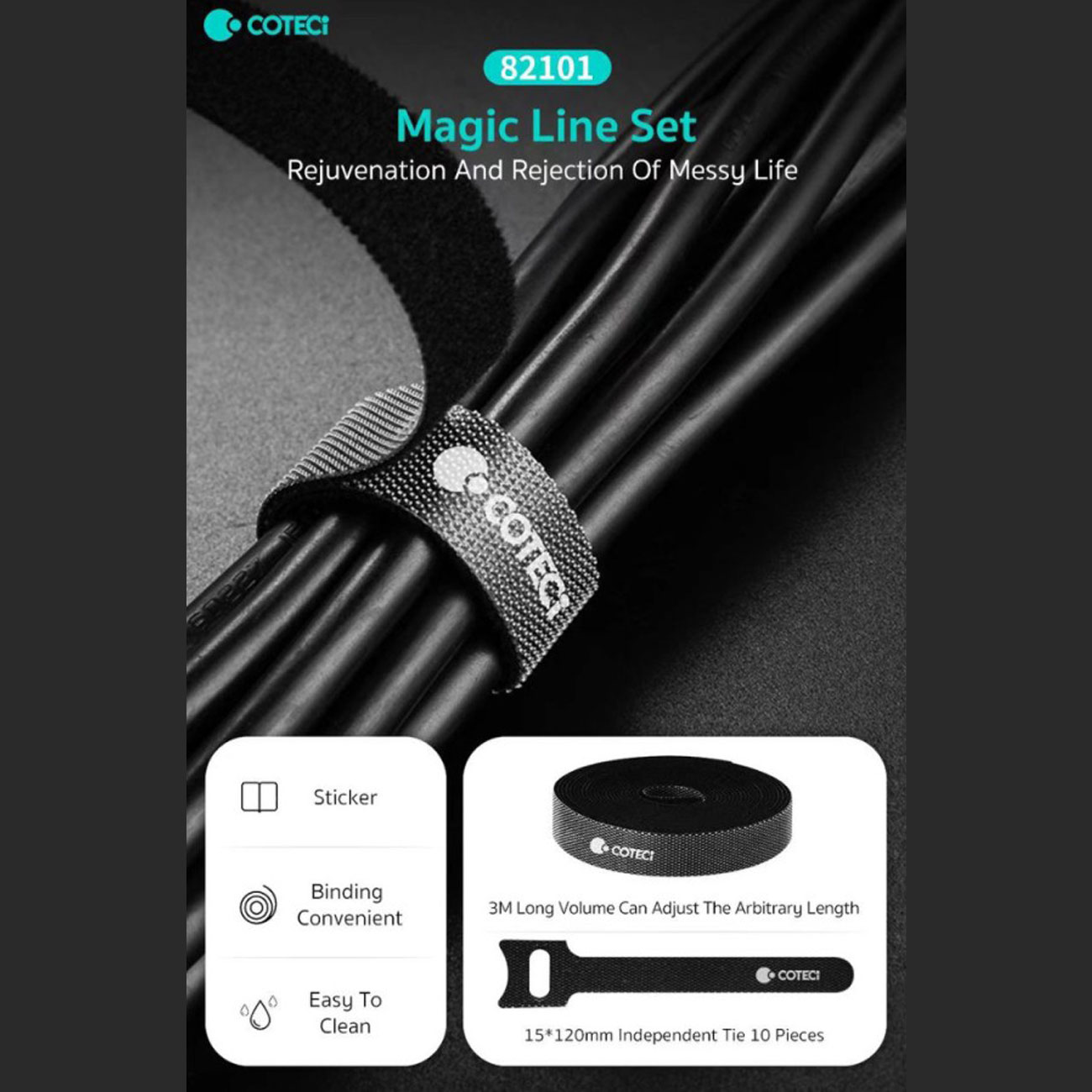 coteetci 82101 Magic line set velcro kabel ties untuk perekat tali pengikat