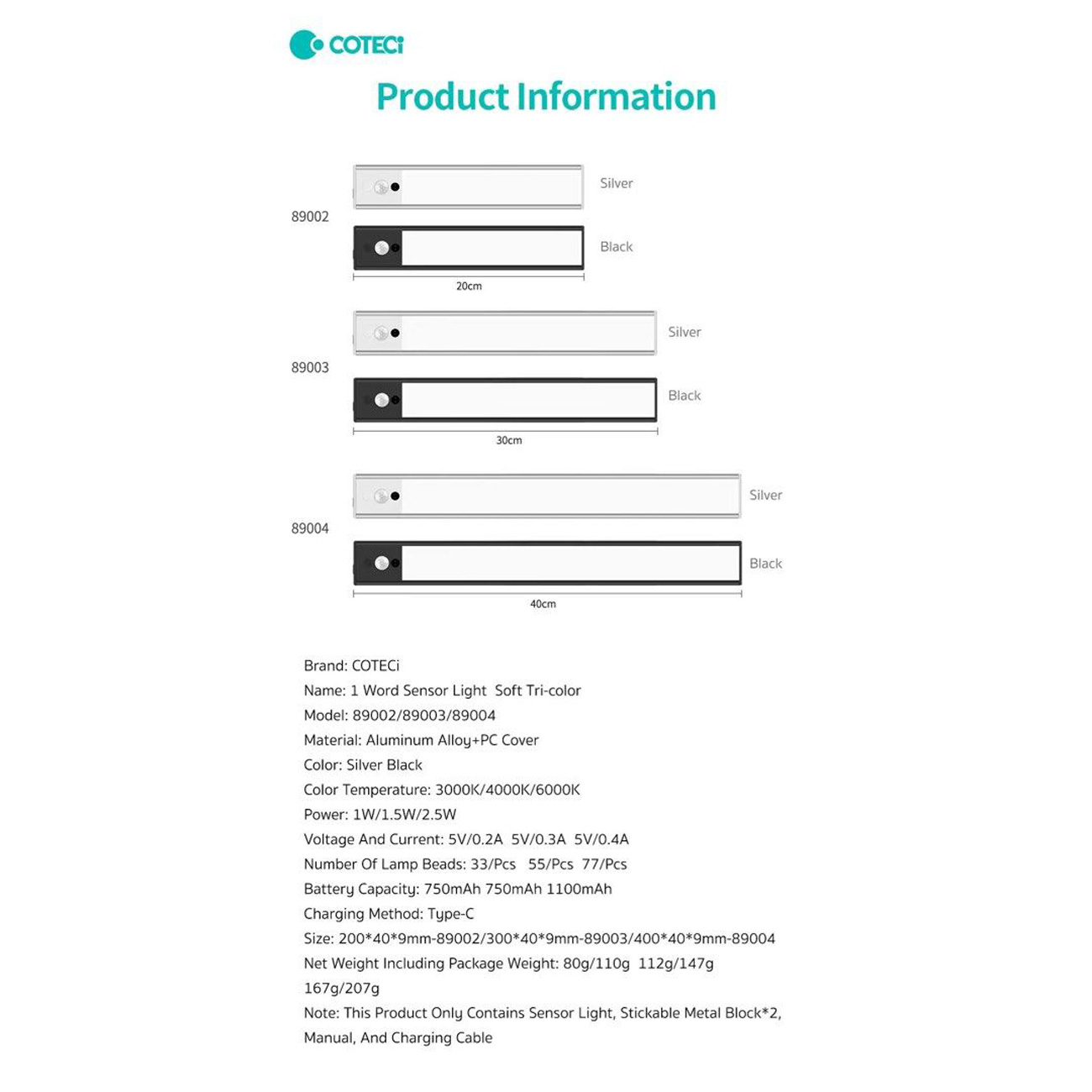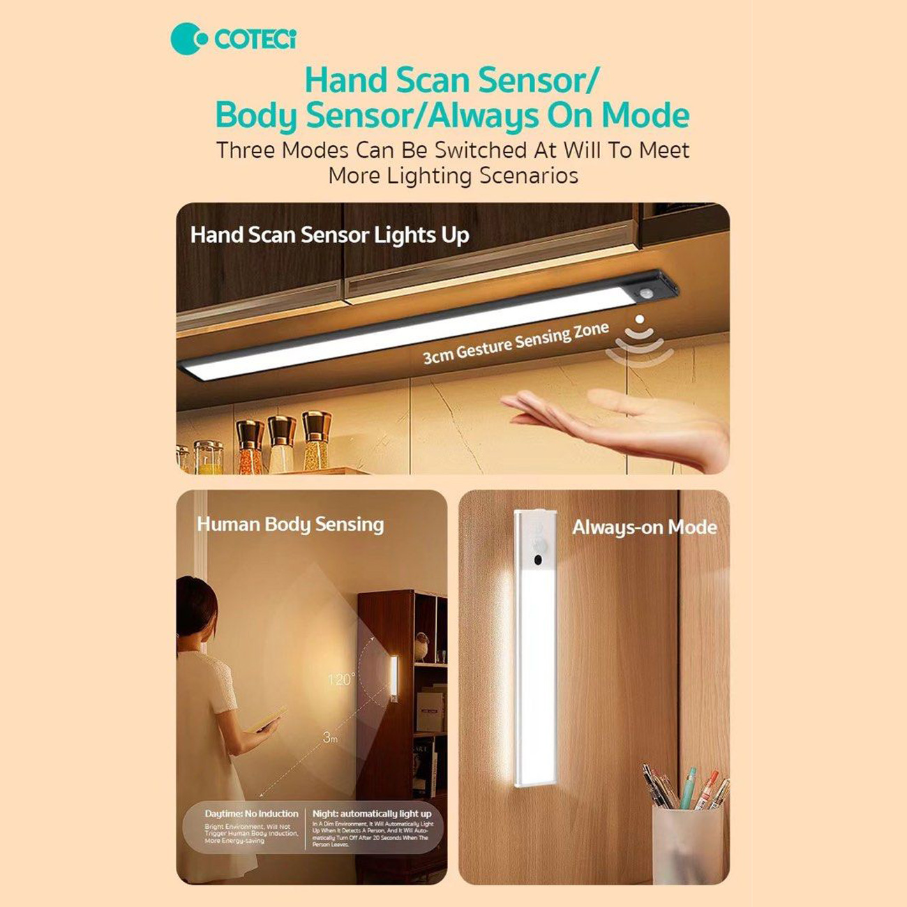 COTECi 1Word Sensor Light Soft Tri-color 89003-30CM-1.5W