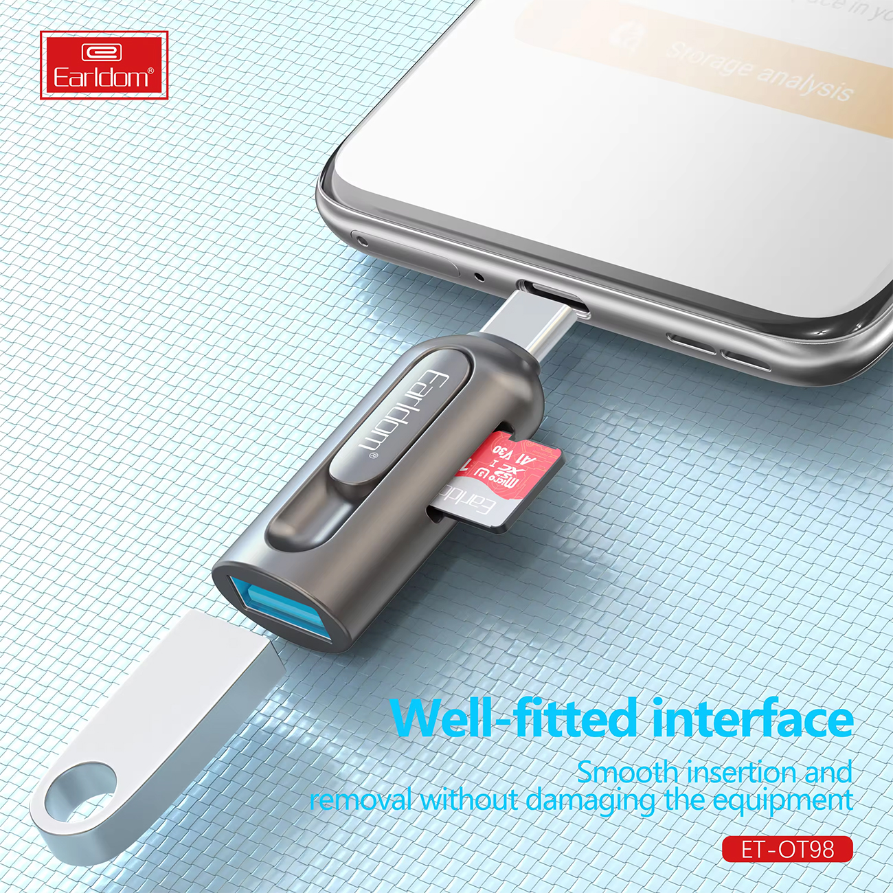 Earldom Factory 3 in 1 Type-C TF Card Reader Writer Smart Type C USB OTG Card Reader