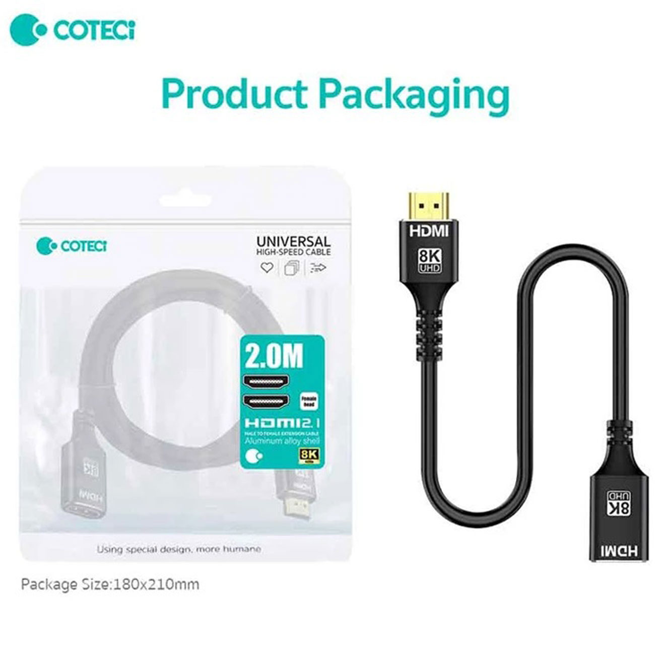 Coteetci 87413 HDMI2.1 8K Male to Female Extension Cable 2m