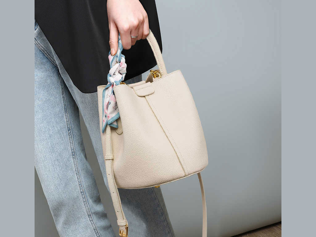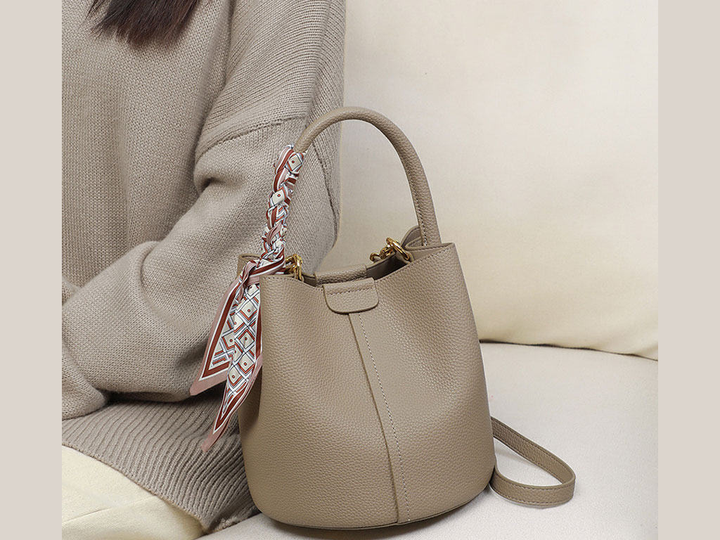 Viney women's bag versatile leather portable bucket bag 4368
