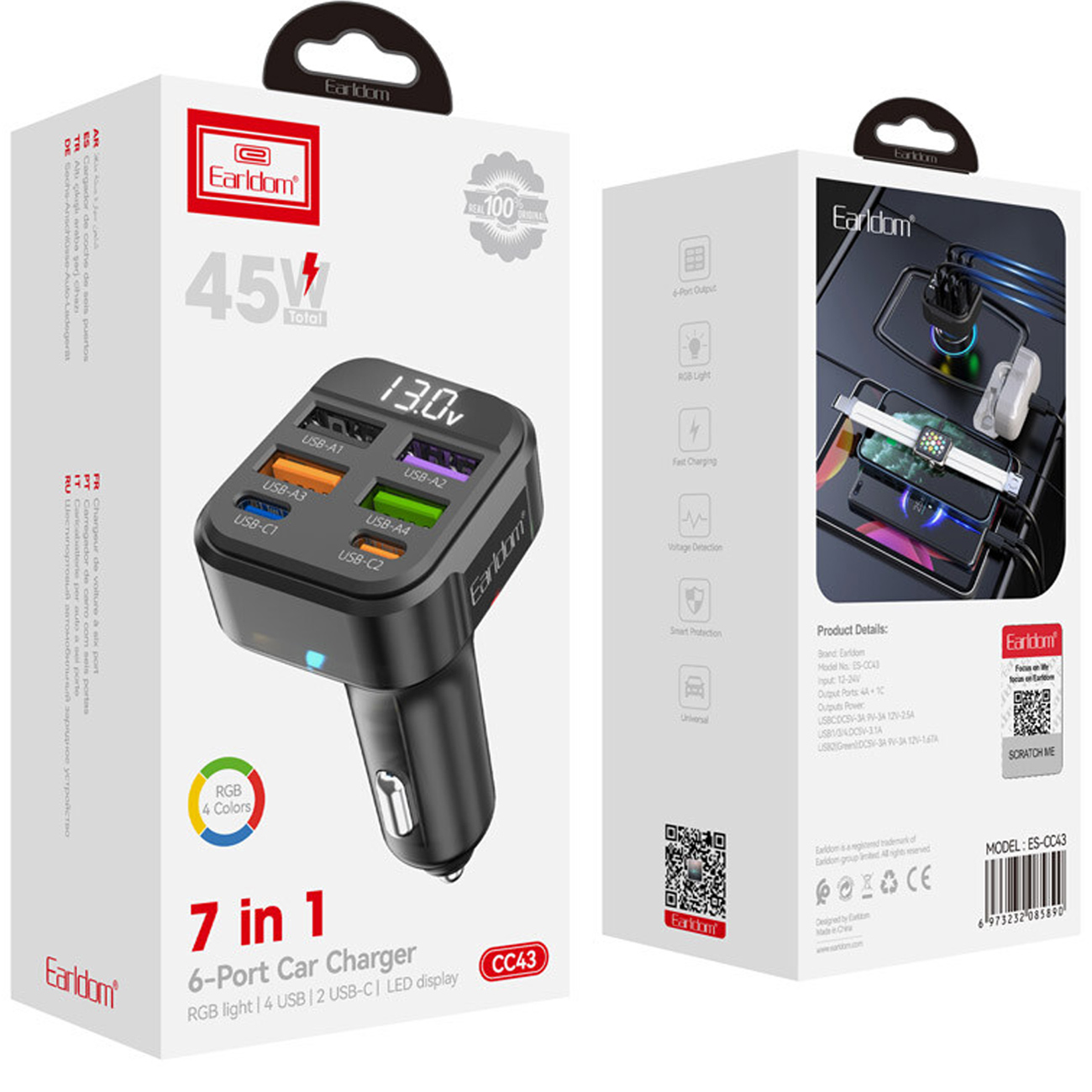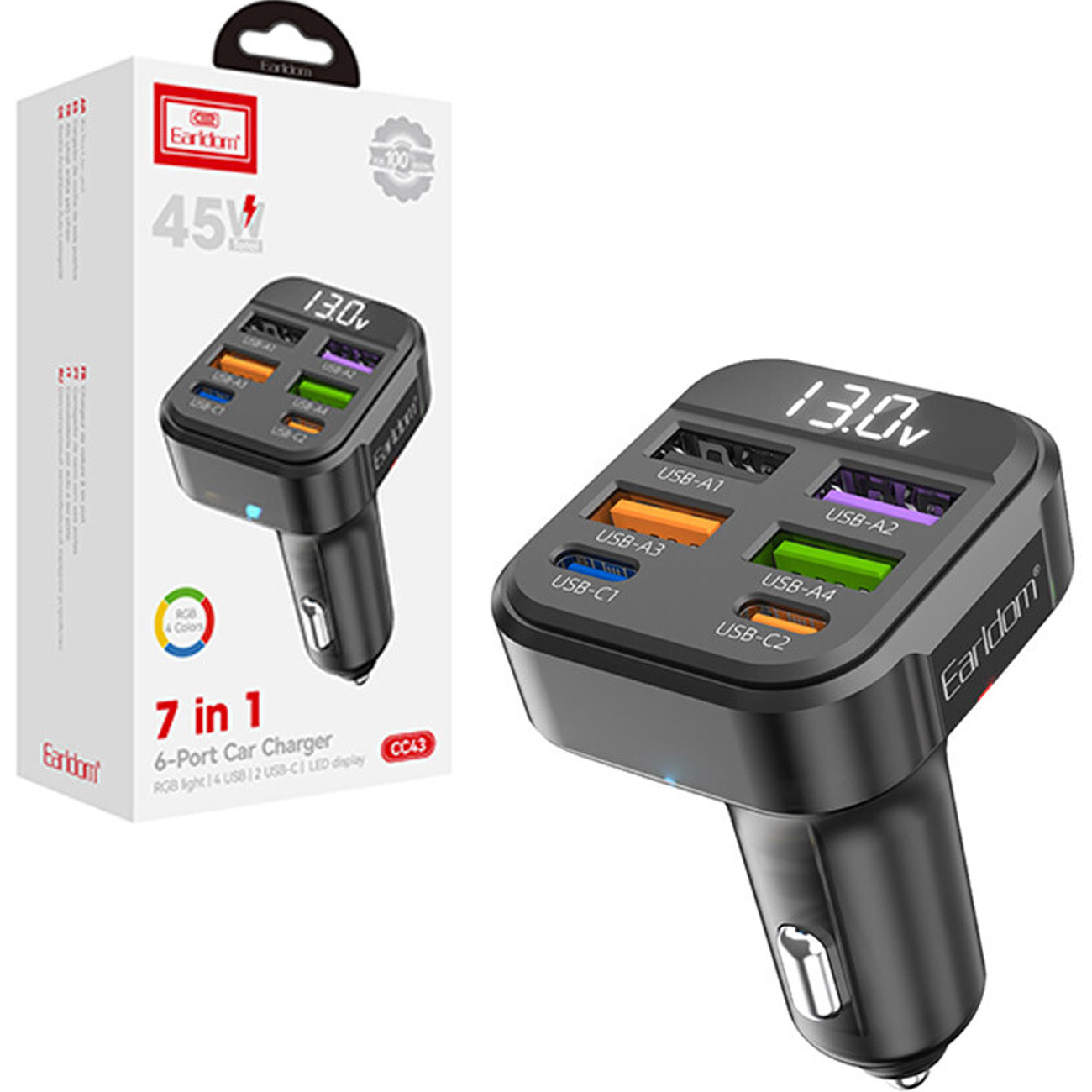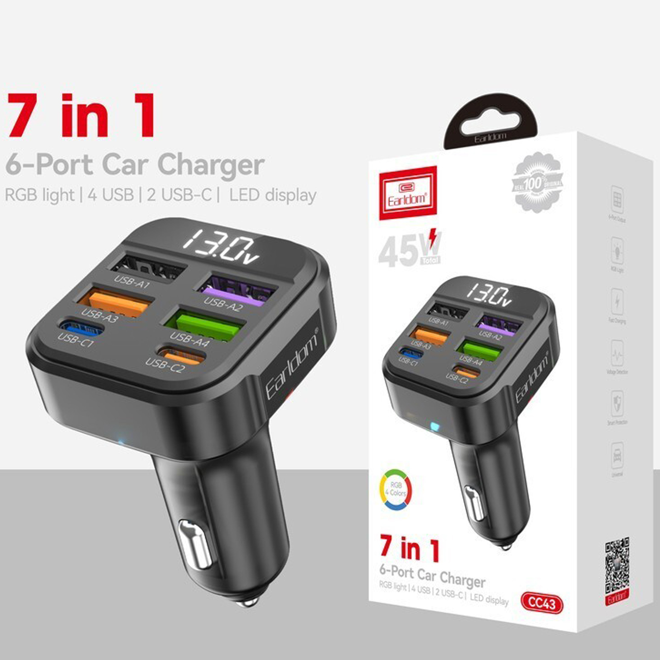Earldom ES-CC43 7 in 1 6-Port 45W Car Charger with Fast Charging