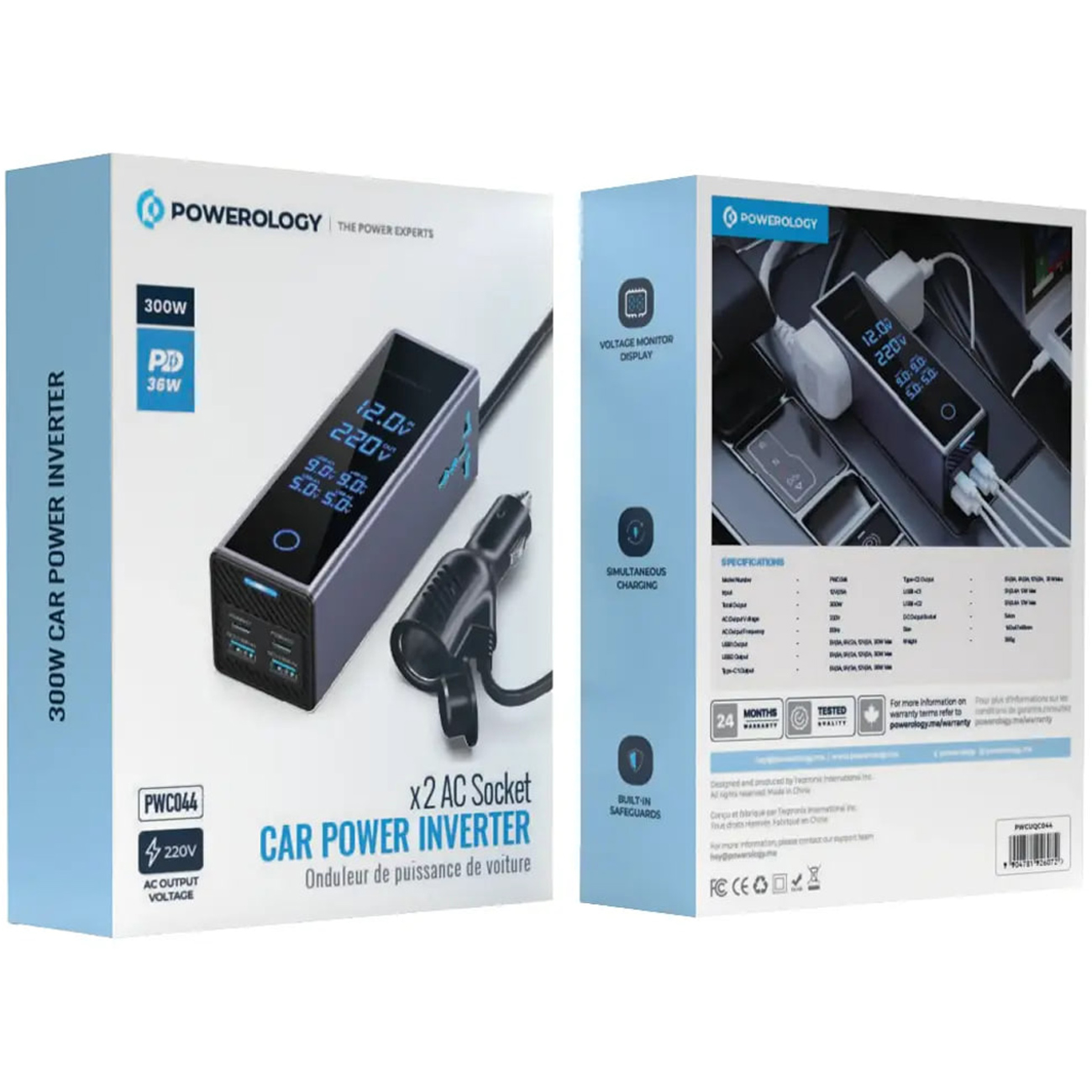 اینورتر فندکی USB و تایپسی 300 وات پاورولوژی PWCUQC044
