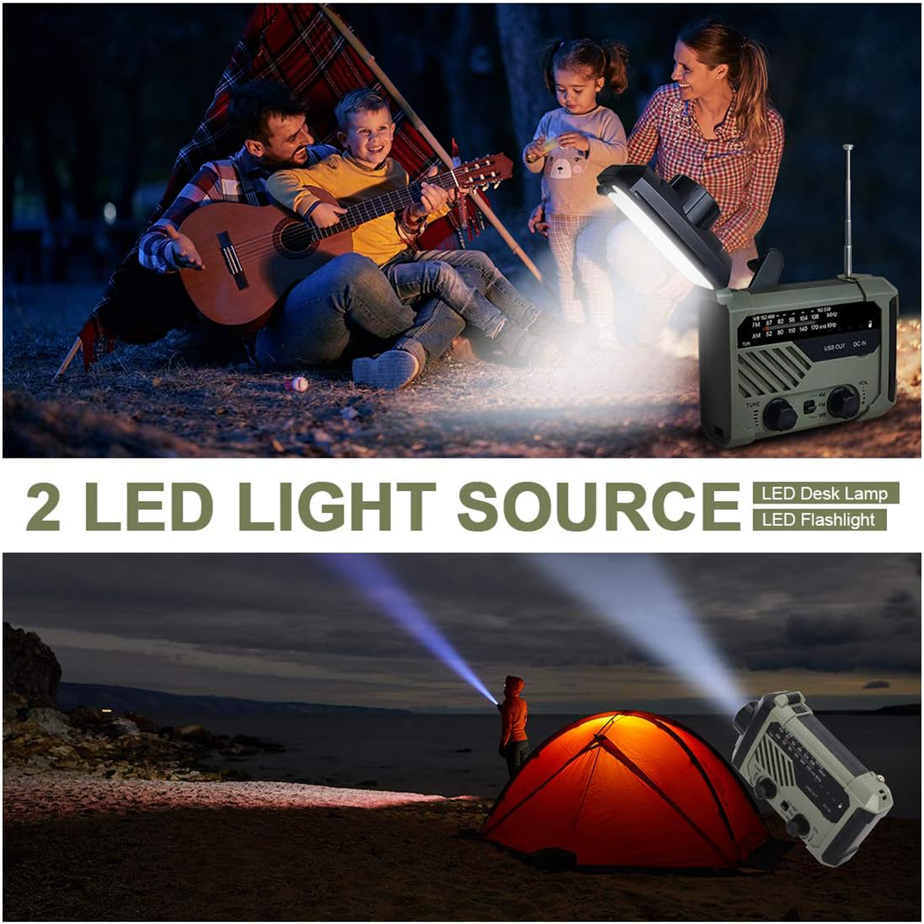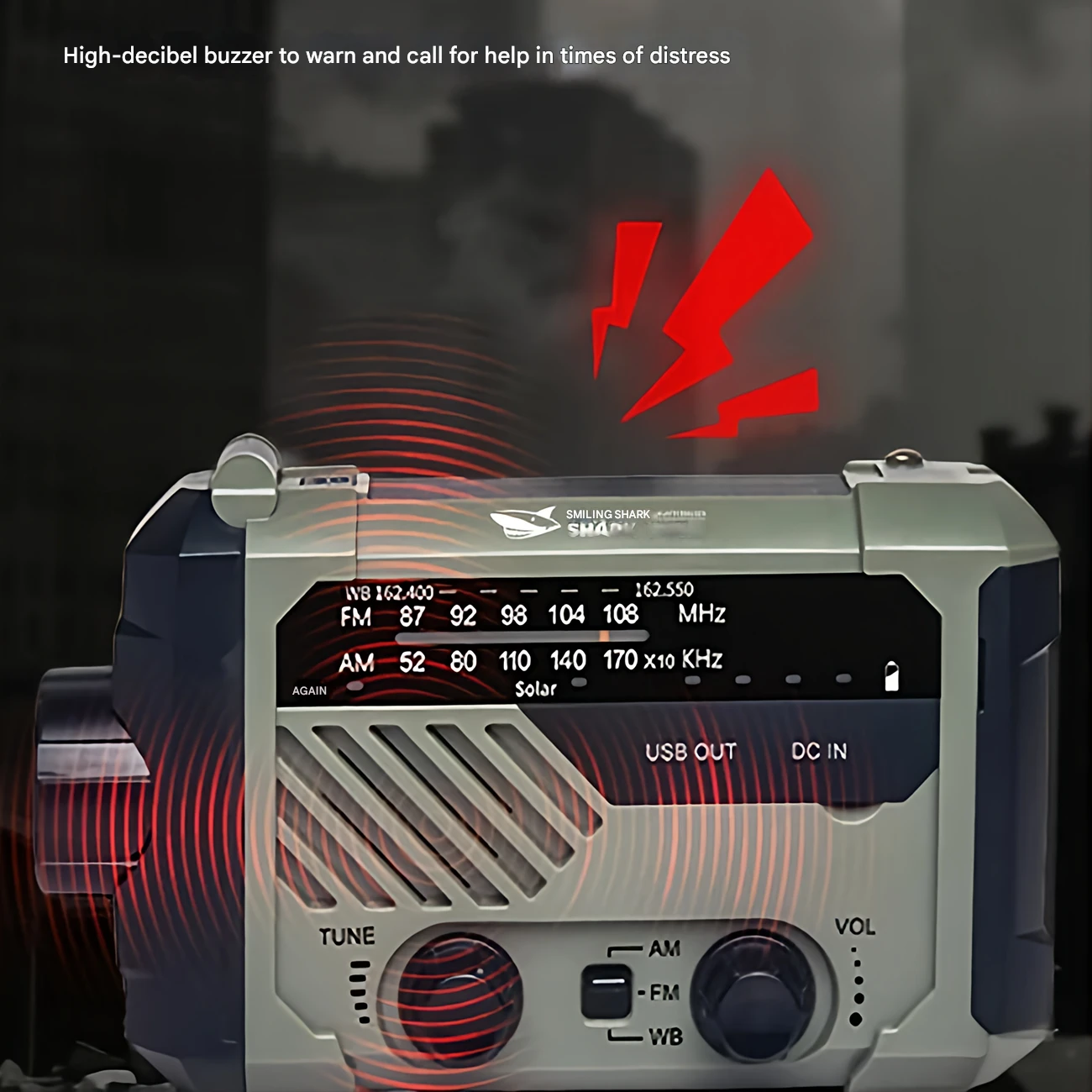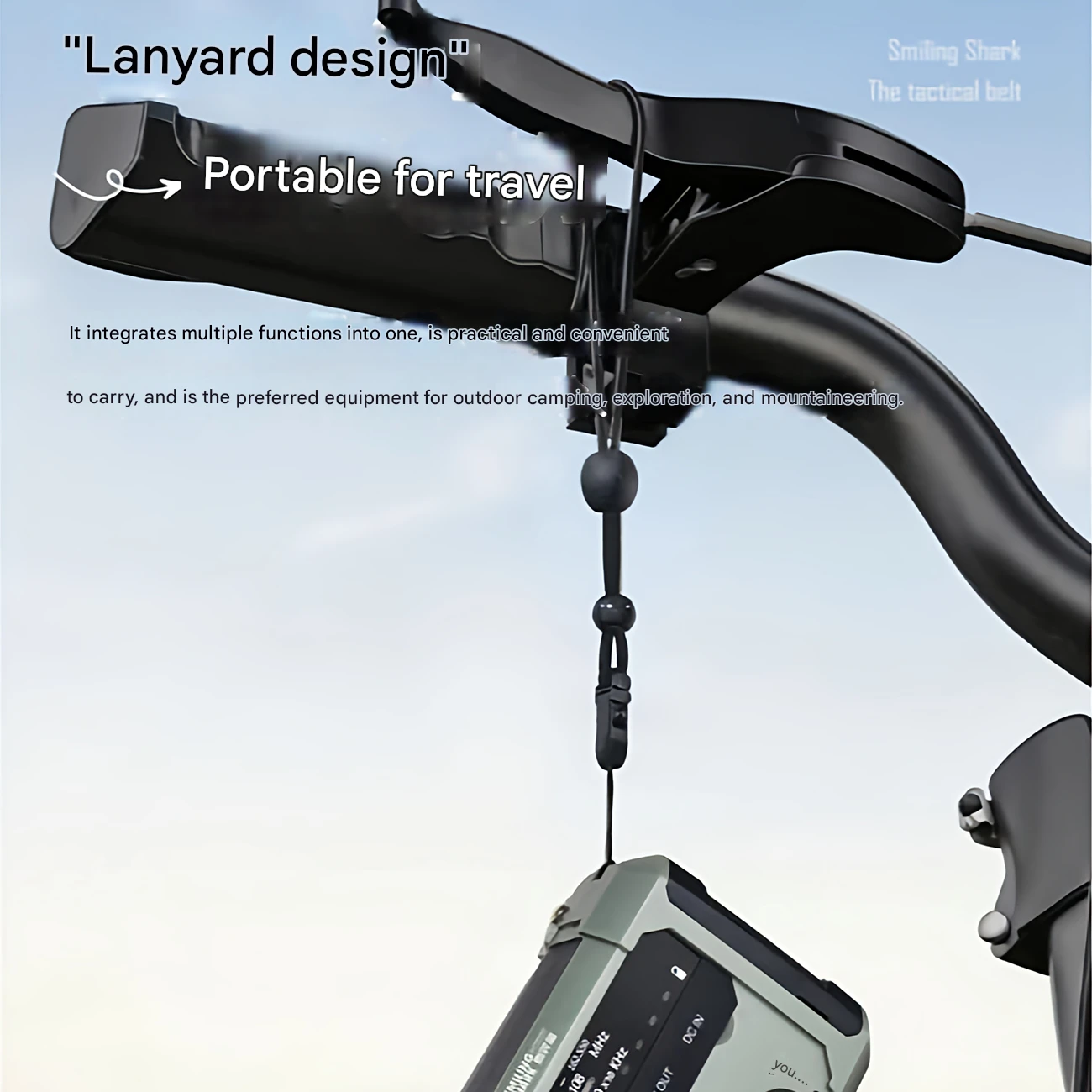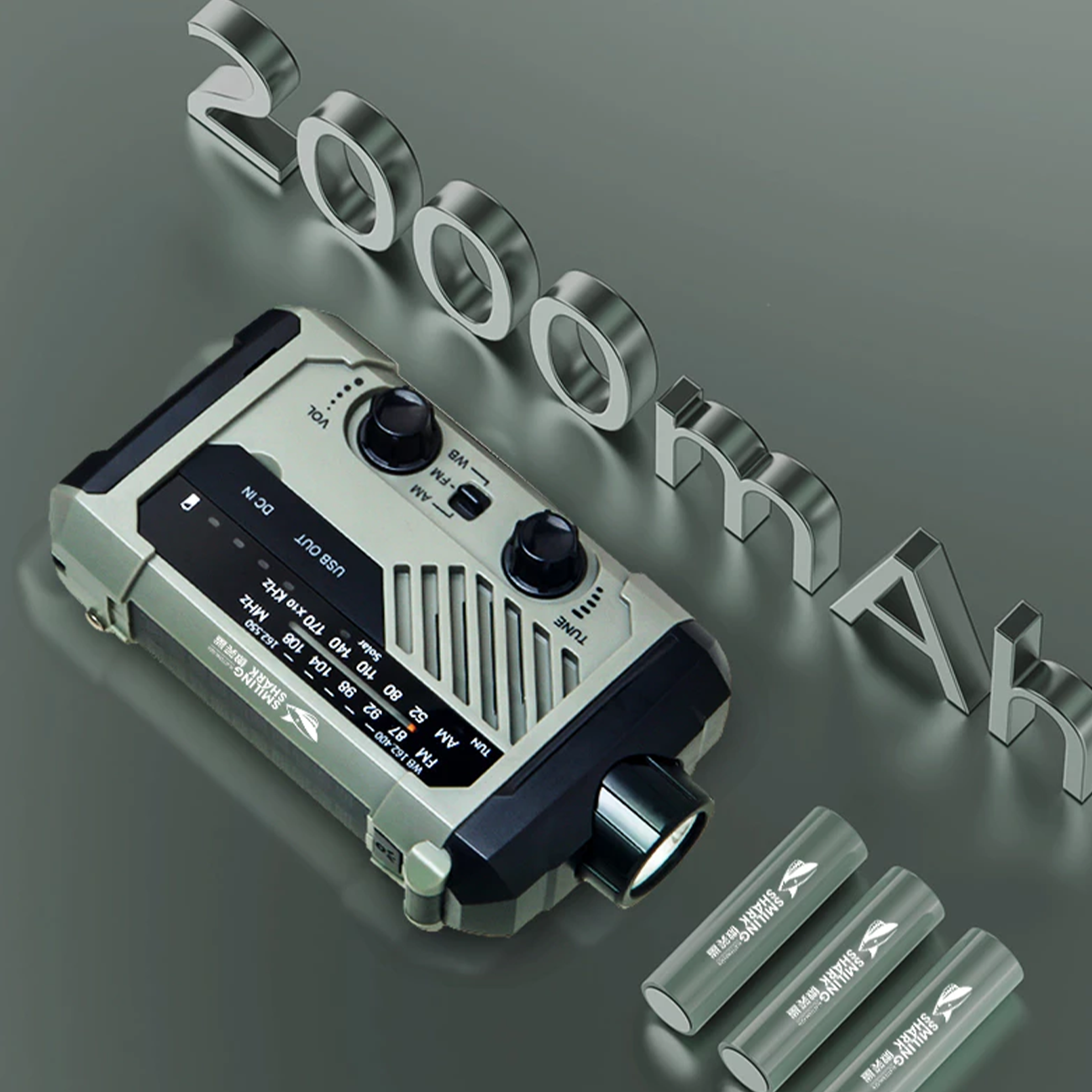 چراغ قوه شارژی و لامپ کمپینگ خورشیدی ضدآب چندمنظوره اسمایلینگ شارک Smiling Shark YJ-D290 با رادیو، پاوربانک و ژنراتور دستی