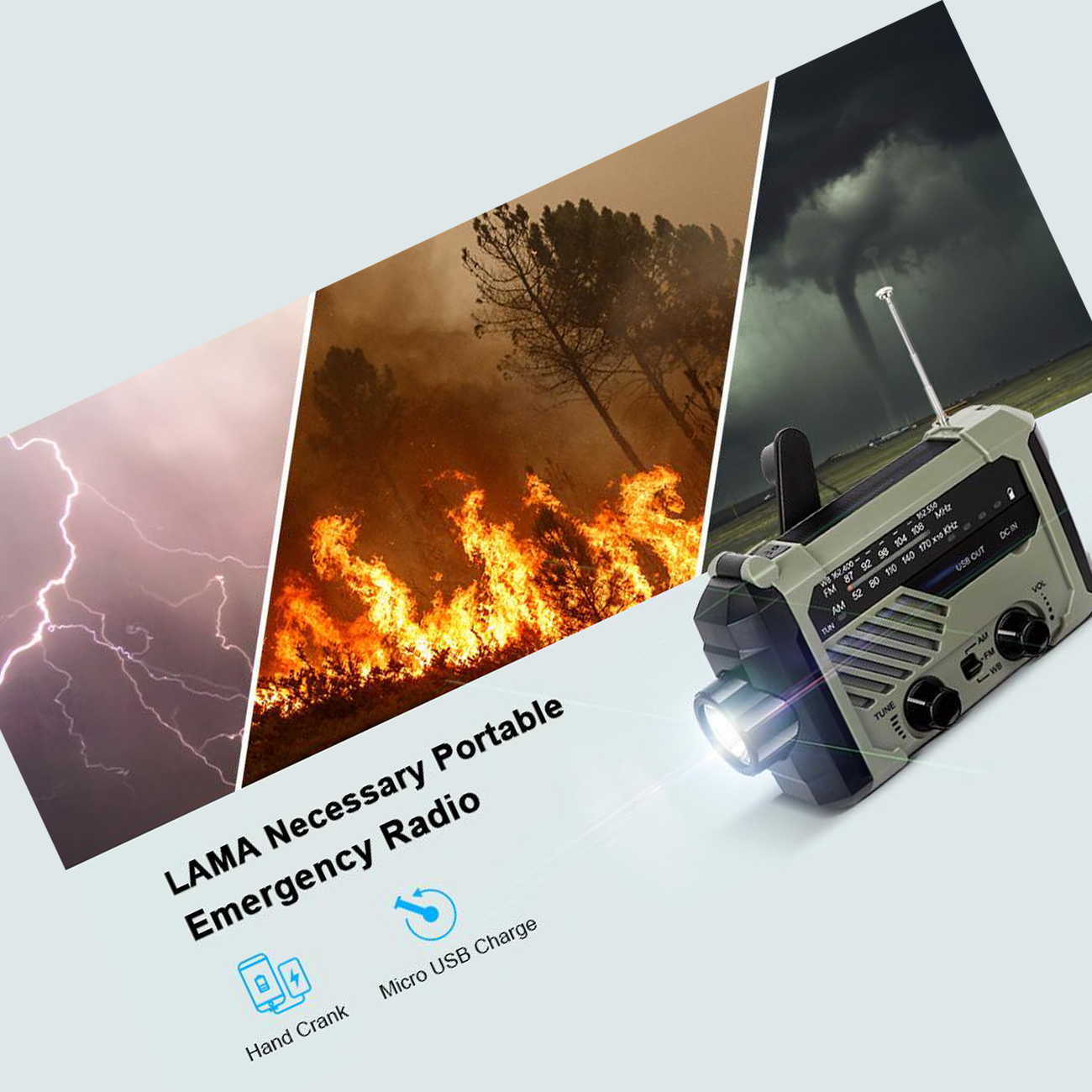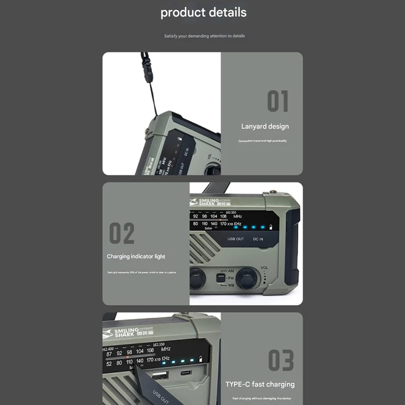 | روشهای شارژ | Type-C، پنل خورشیدی، هندل دینام دستی |