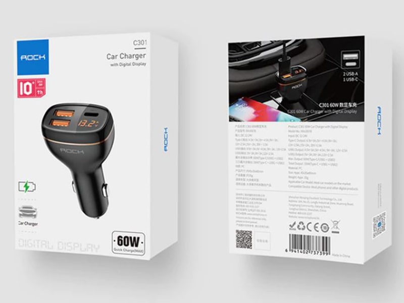 ROCK C301 60W Smart Digital Display Car Charger