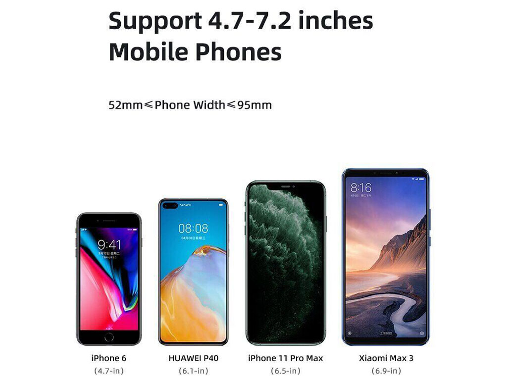 | مناسب برای | گوشیهایی در سایز 4.7-7.2 اینچی (عرض تلفن 52میلیمتر≤95میلیمتر) |