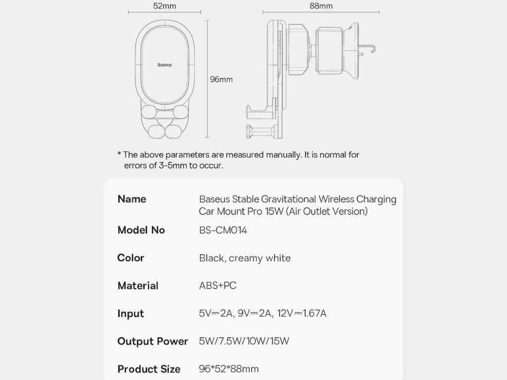 Baseus Stable Gravitational Wireless Charging Car Mount Pro 15W BS-CM014 SUWX030001 Air Outlet Version