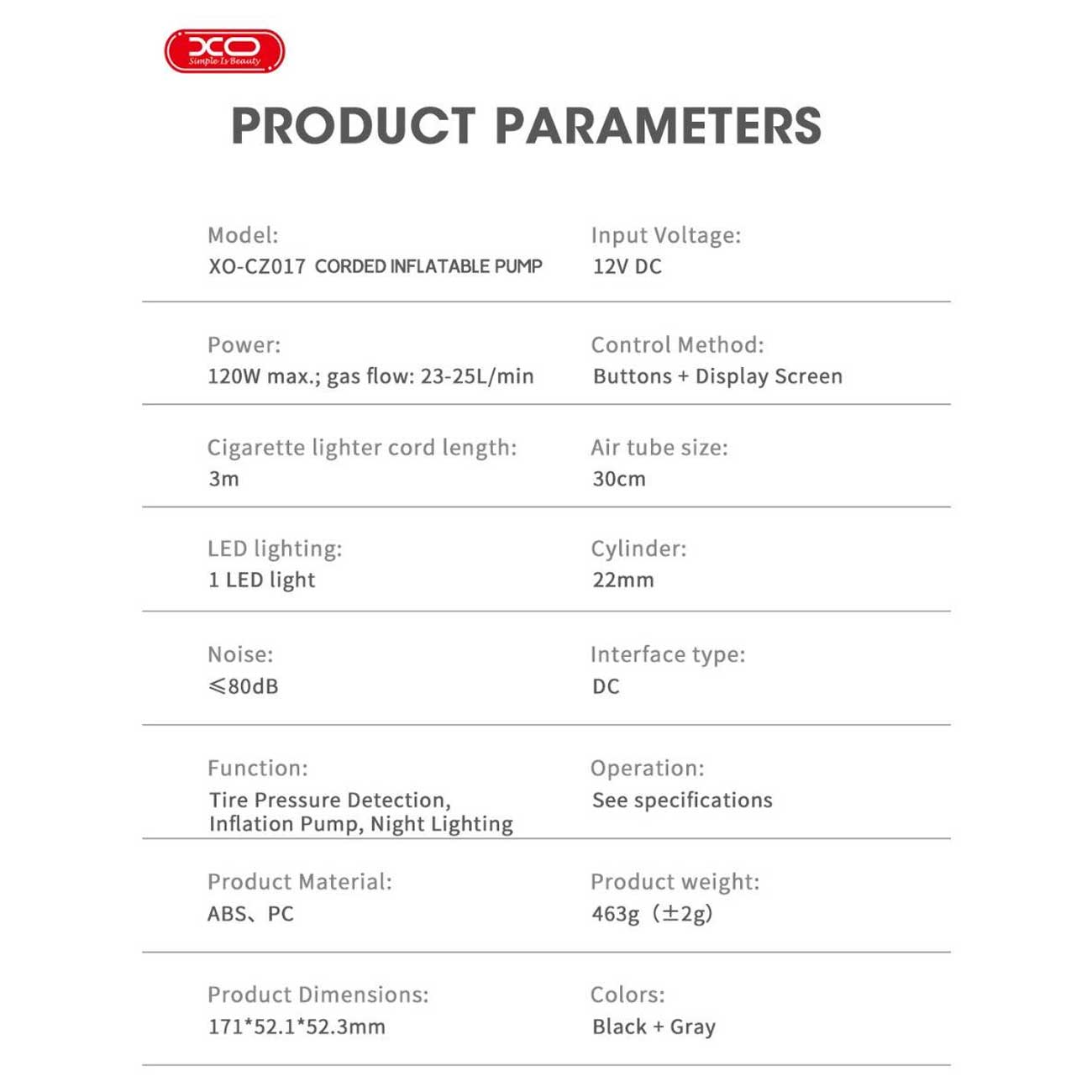 XO CZ017 Smart Mini Wired Inflatable Pump 22 Cylinders