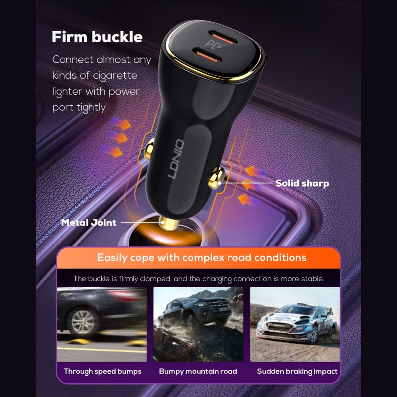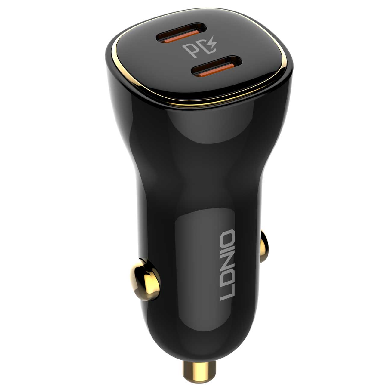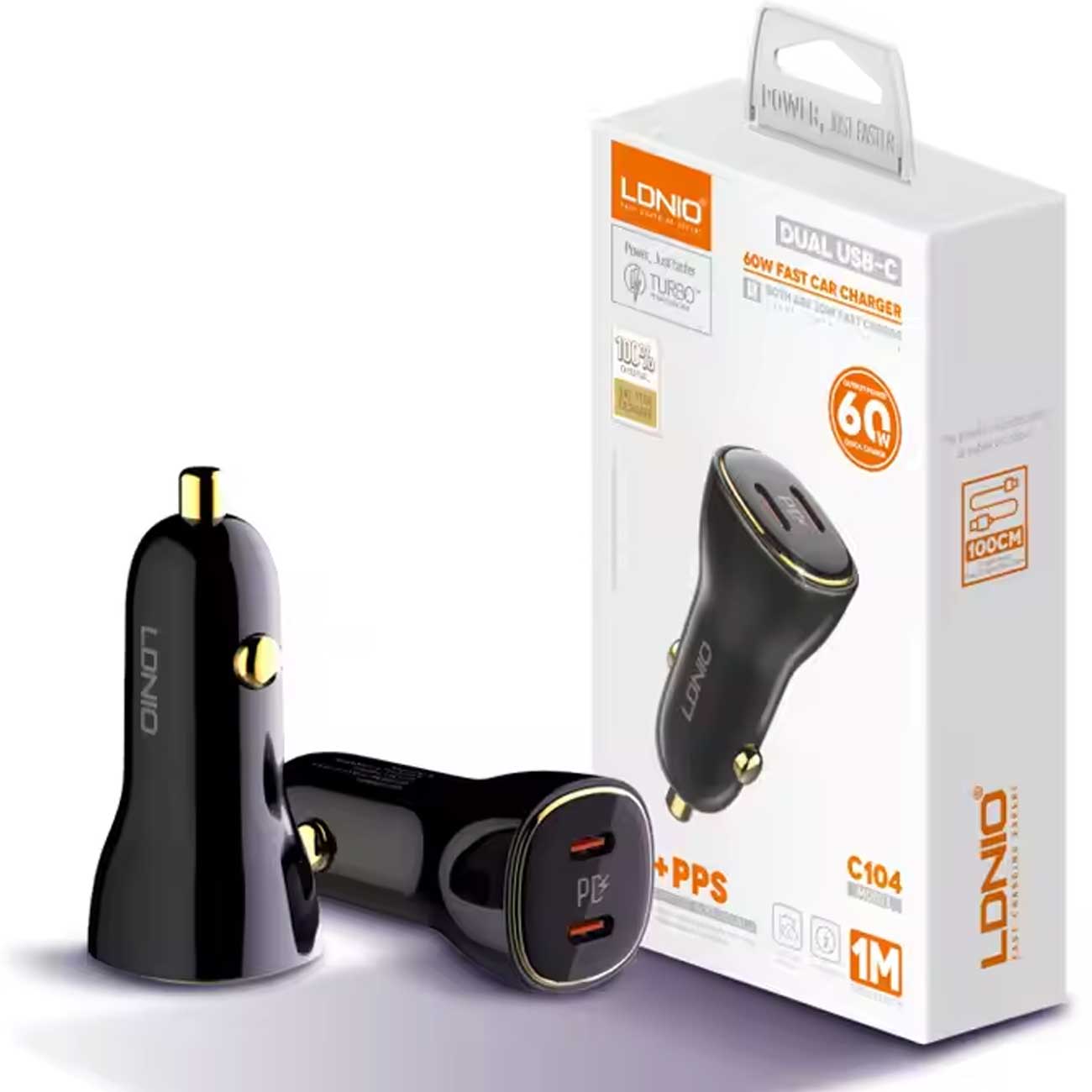 شارژر فندکی فست شارژ ماشین تایپسی 60 وات الدنیو C104 همراه با کابل شارژ