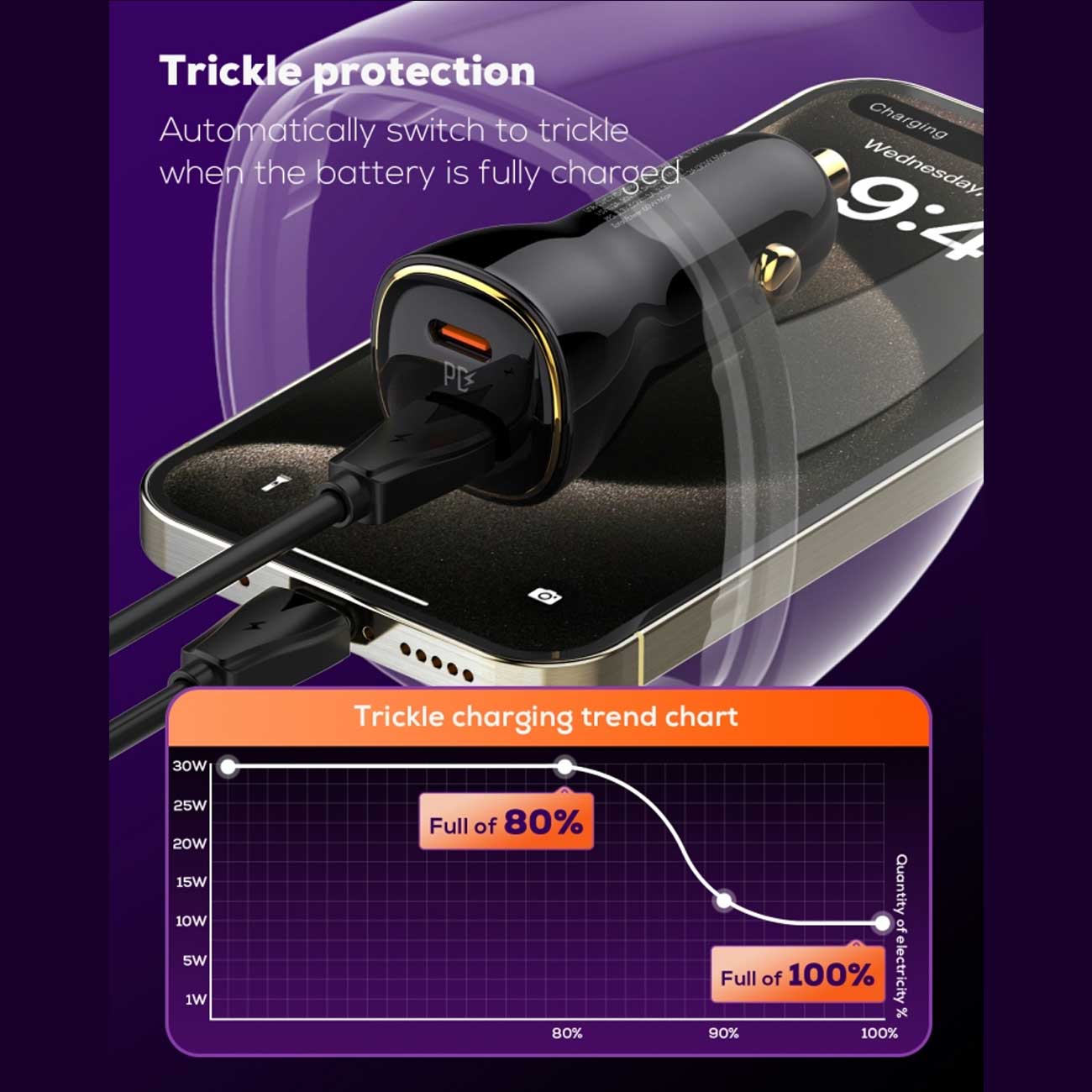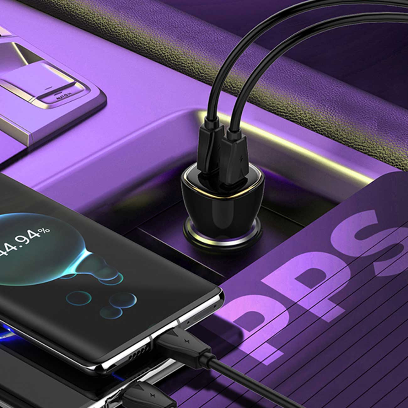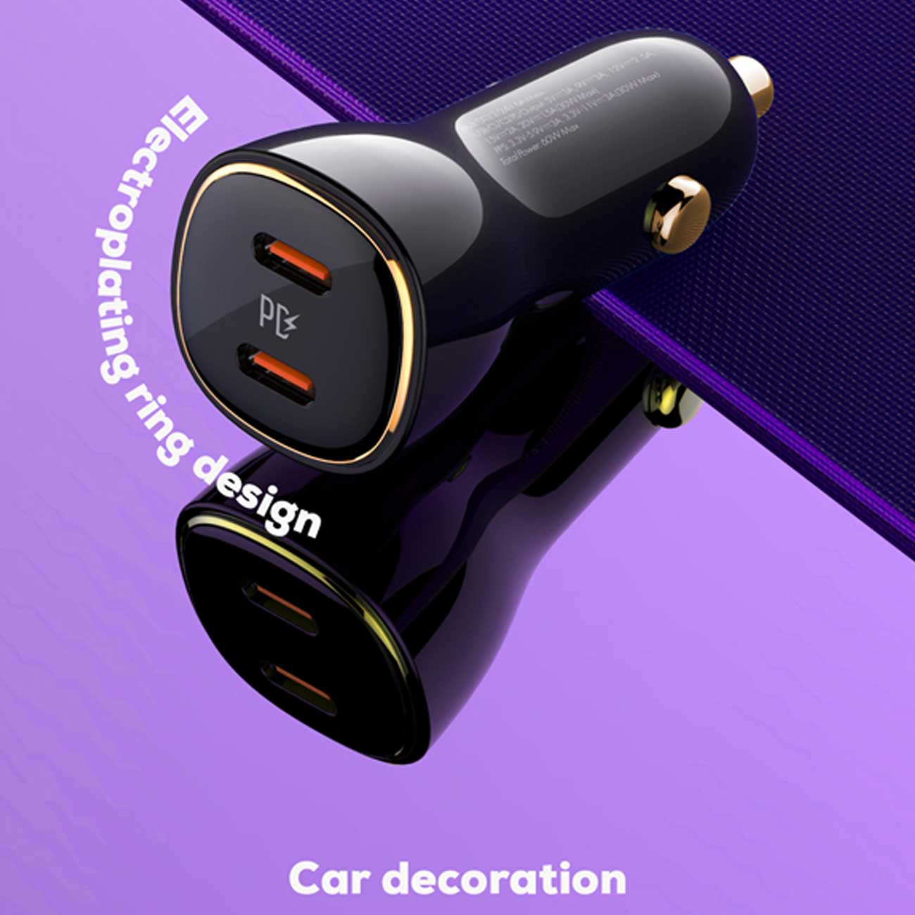 شارژر فندکی فست شارژ ماشین تایپسی 60 وات الدنیو C104 همراه با کابل شارژ
