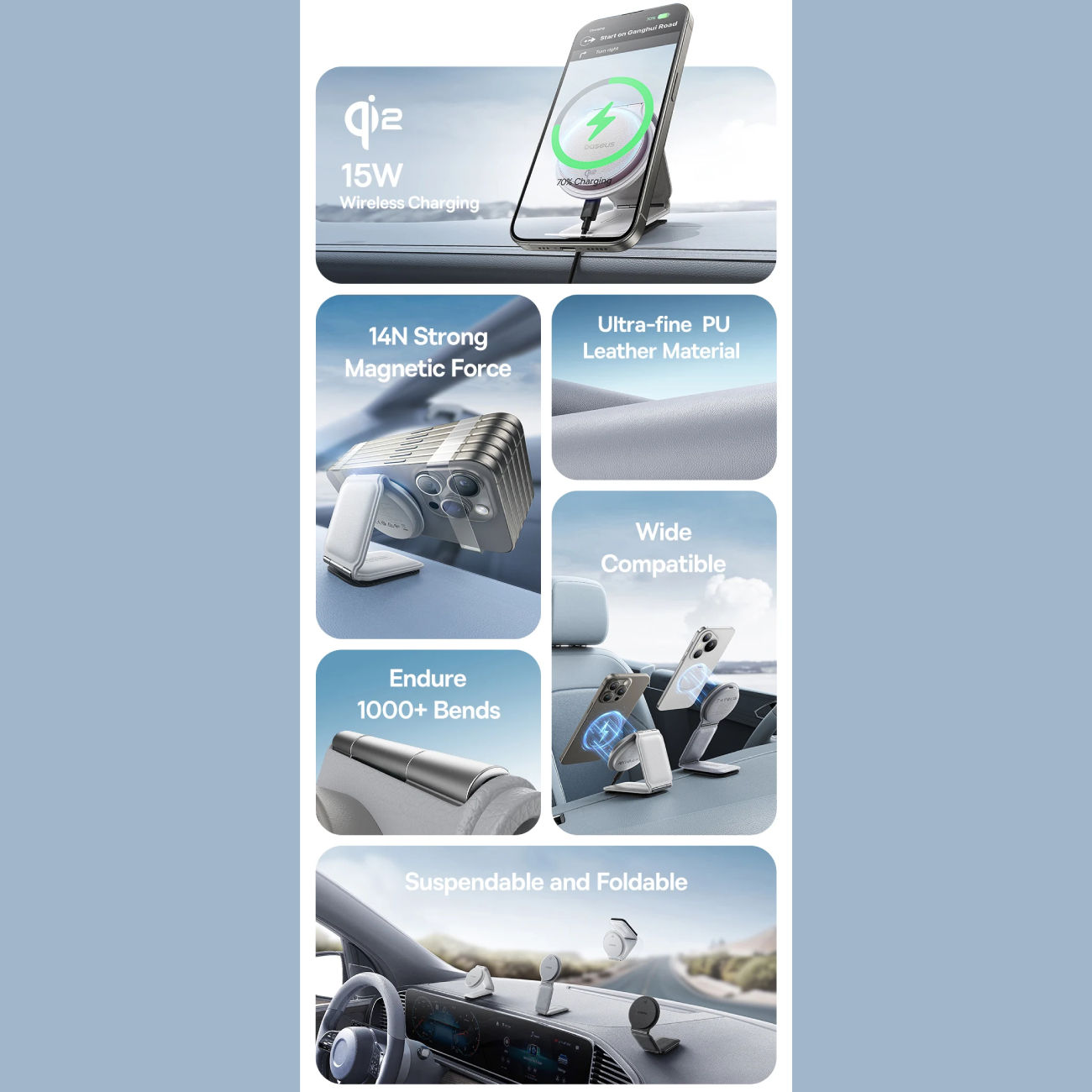 هولدر و شارژر بی سیم مگنتی تاشو داخل خودرو 15 وات بیسوس C40169003111-00