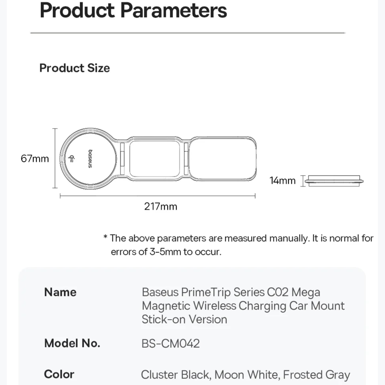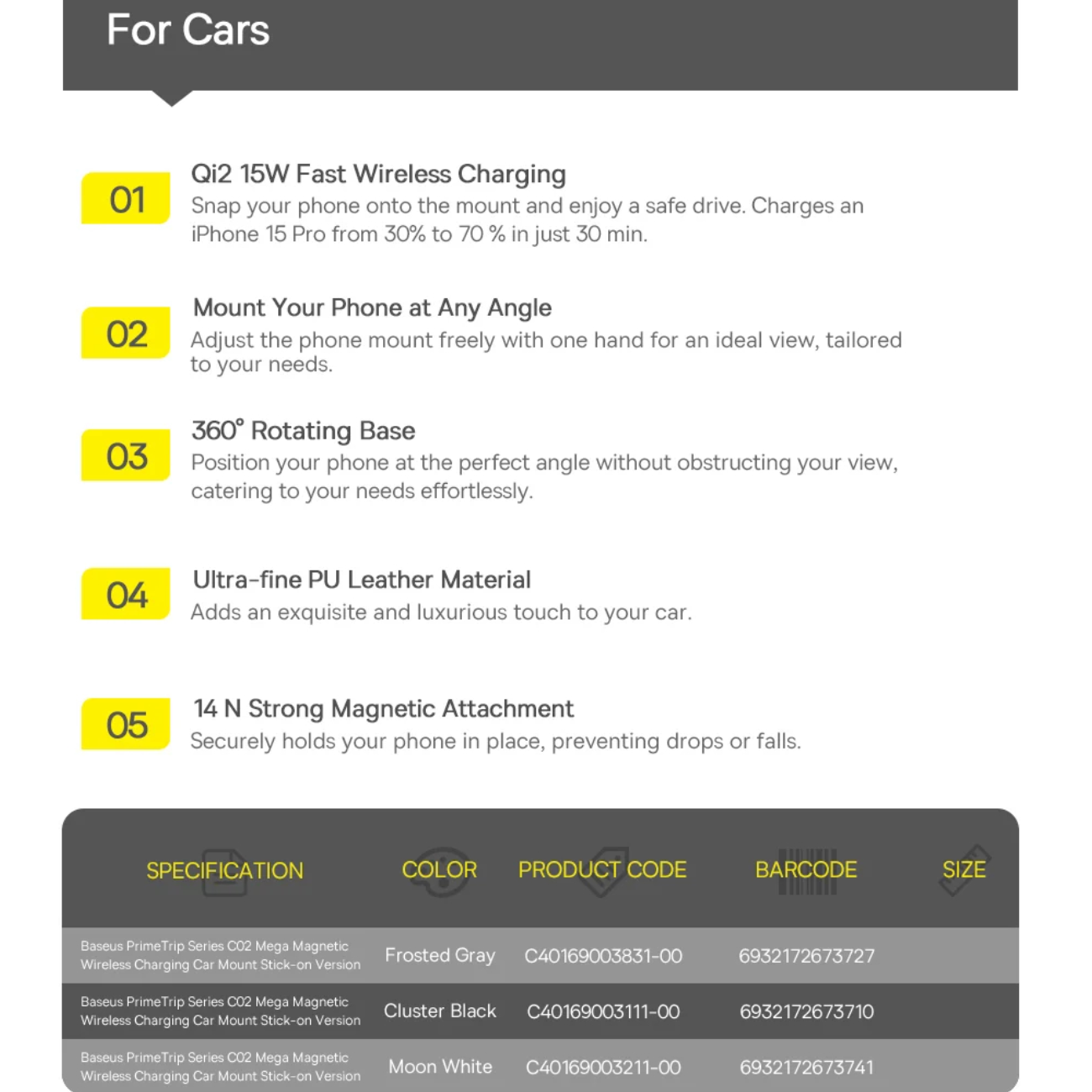 Baseus PrimeTrip Series C02 Mega Magnetic Wireless Charging Car Mount Stick-on Version Cluster C40169003111-00