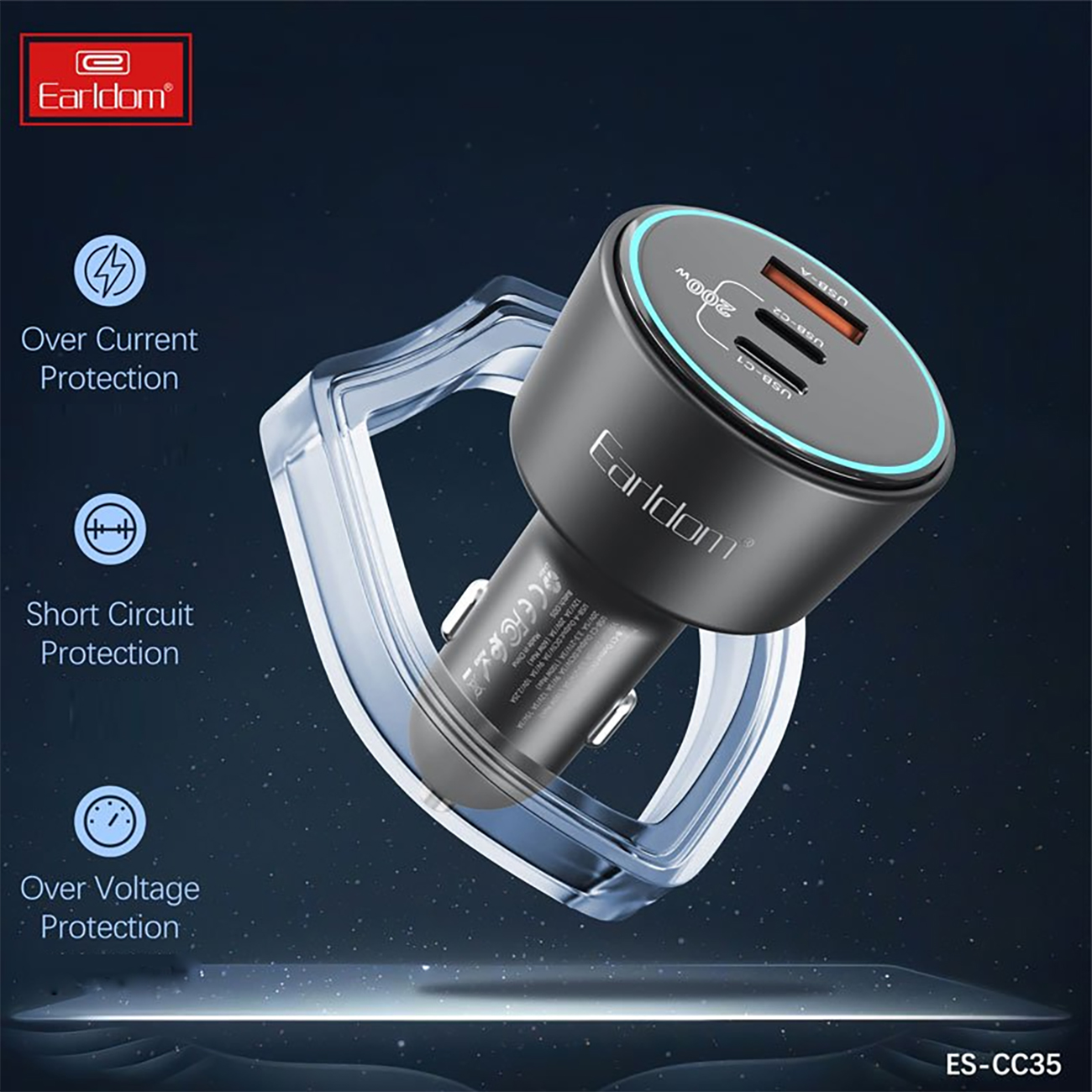 Earldom ES-CC35 PD 5A 100W Triple Port Car Charger