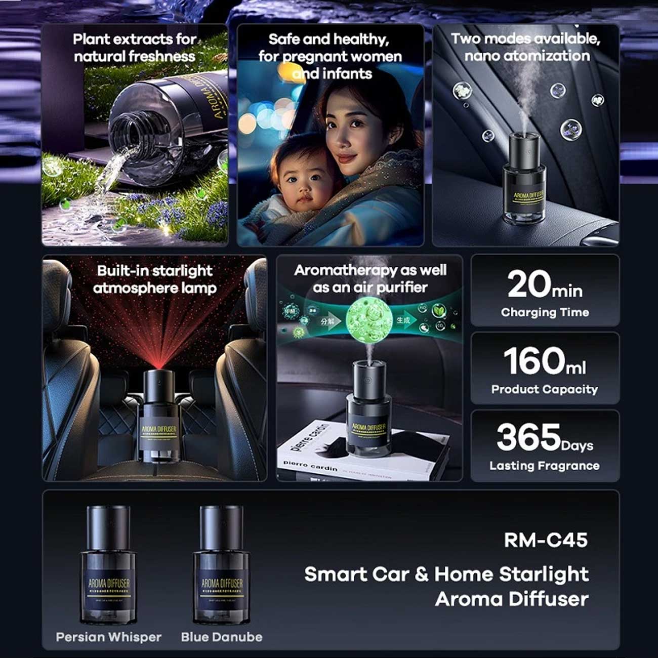 | نحوه عملکرد | تبدیل آب و اسانس به بخار معطر با فناوری اولتراسونیک + نورپردازی Starlight + کنترل با ریموت و کلید لمسی |