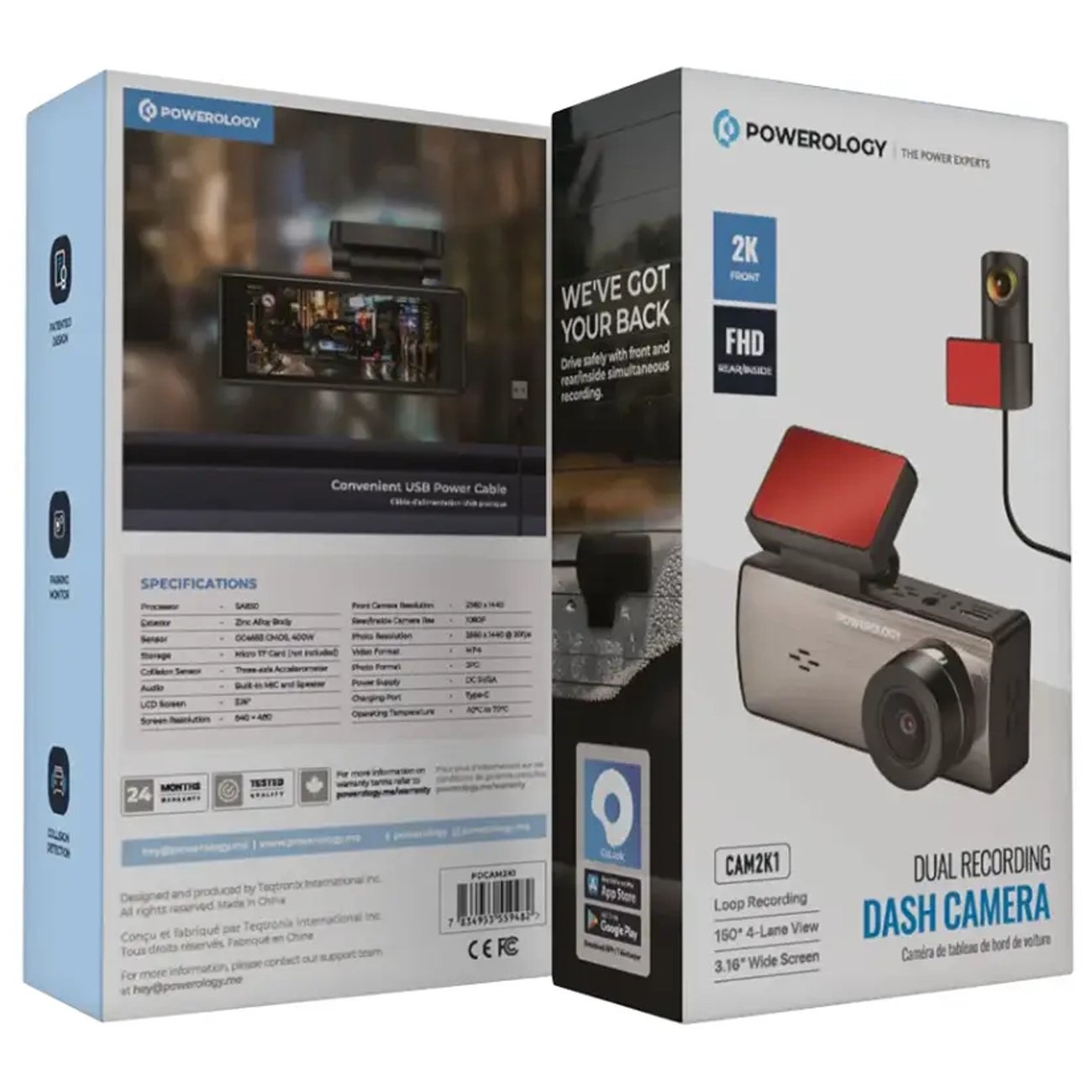 Powerology PDCAM2K1 Dual Recording lens Dash Camera