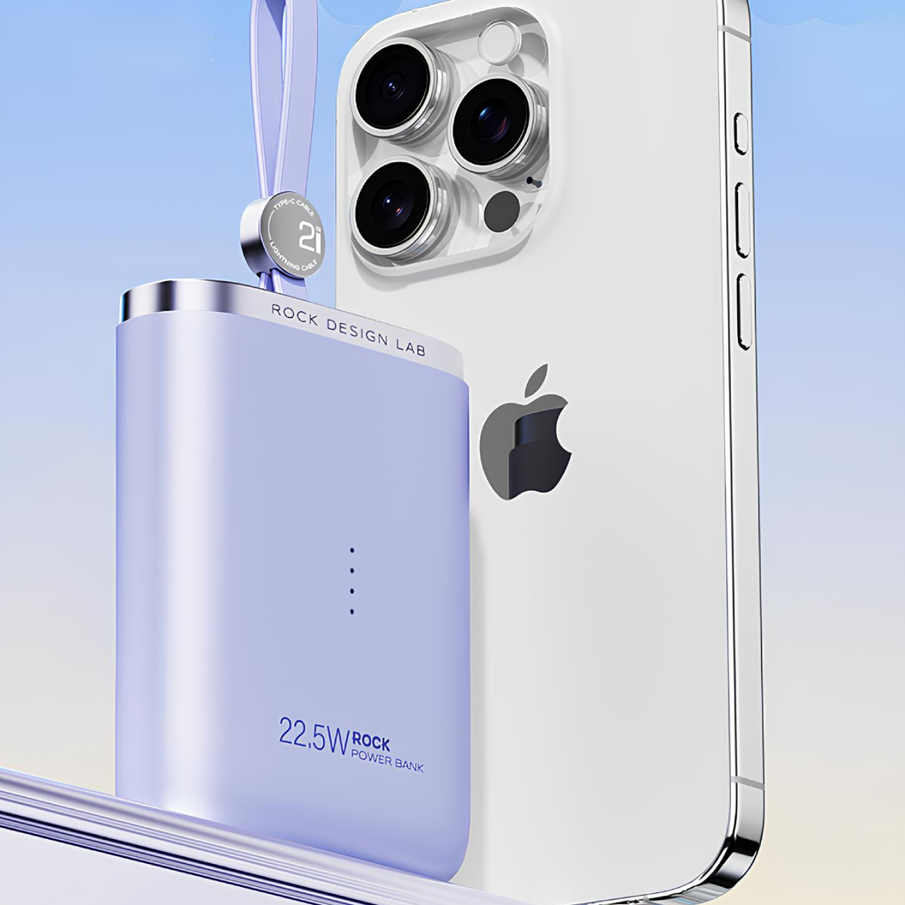 پاور بانک تایپ سی و لایتنینگ 22.5 وات 10000 با کابل تایپ سی به لایتنینگ راک RWC-8888