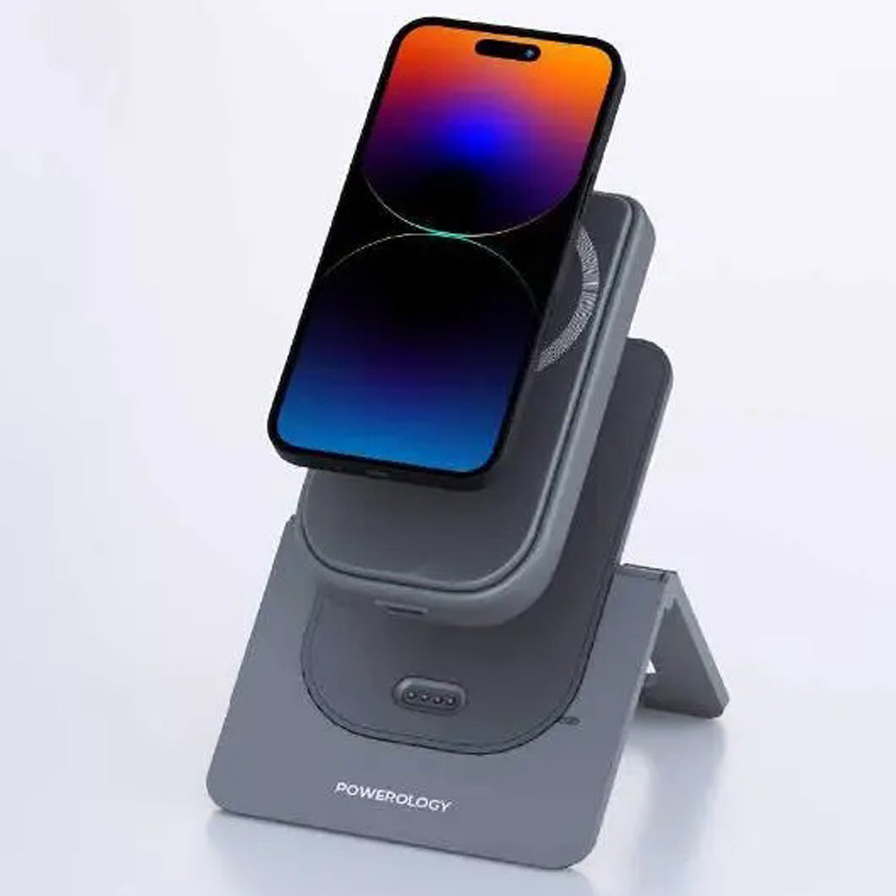 پاوربانک مگنتی 15 وات 10000 و هولدر رومیزی موبایل پاورولوژی PPBCHA21GY