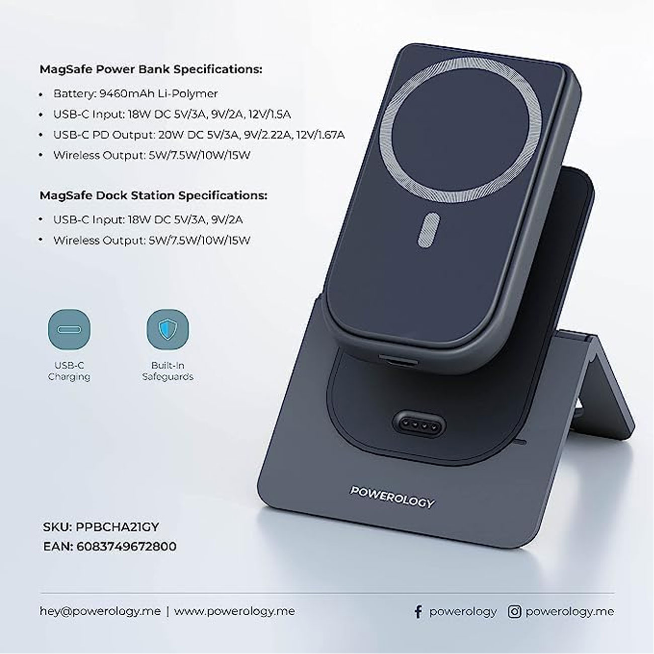 Powerology 10000mAh MagSafe Combo Power Bank PPBCHA21GY