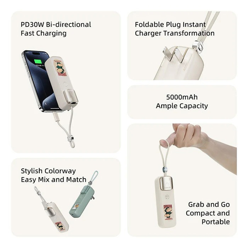 | امکانات و قابلیتها | دارای کابل اتصال تایپ سی با قابلیت استفاده به عنوان بند حمل تکنولوژی GaN (گالیوم نیترید) قابل استفاده به عنوان شارژر دیوار / پاروبانک سیستم حفاظت پیشرفته |