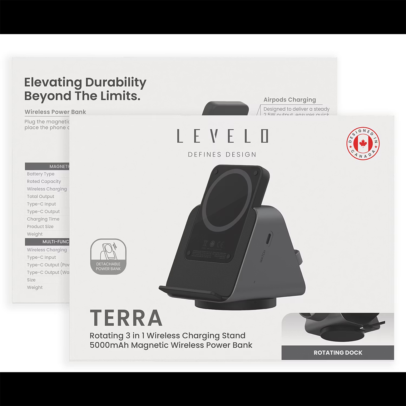 Levelo LVLTWCSPBK TERRA Wireless Charging with Portable Power Bank