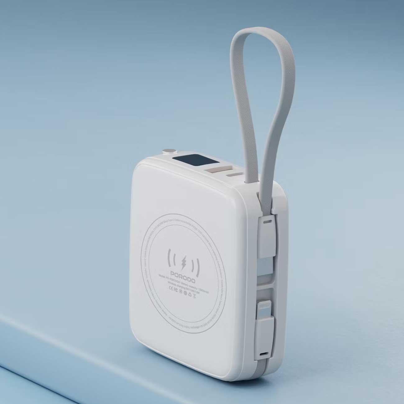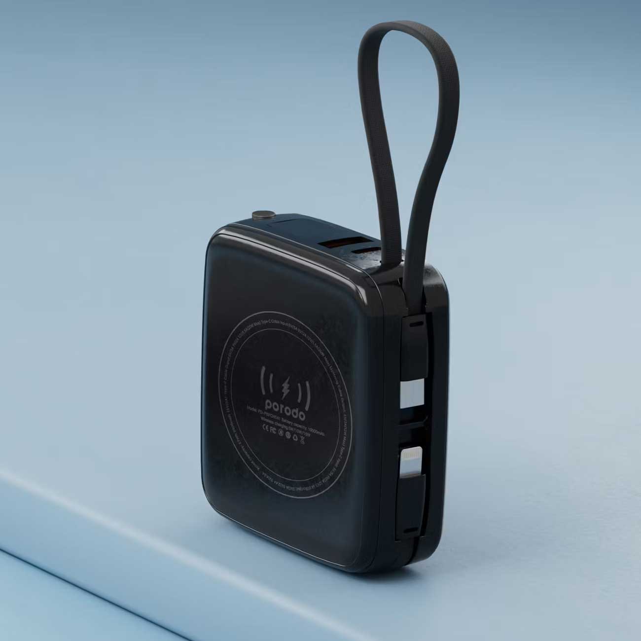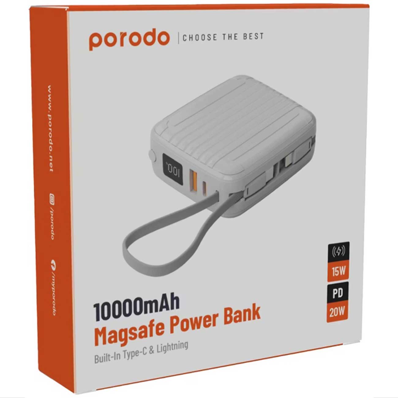 Porodo PD-PBFCH041-BK Magsafe Power Bank 10000mAh PD 20W Wireless 15W with Built-In Type-C & Lightning Cable