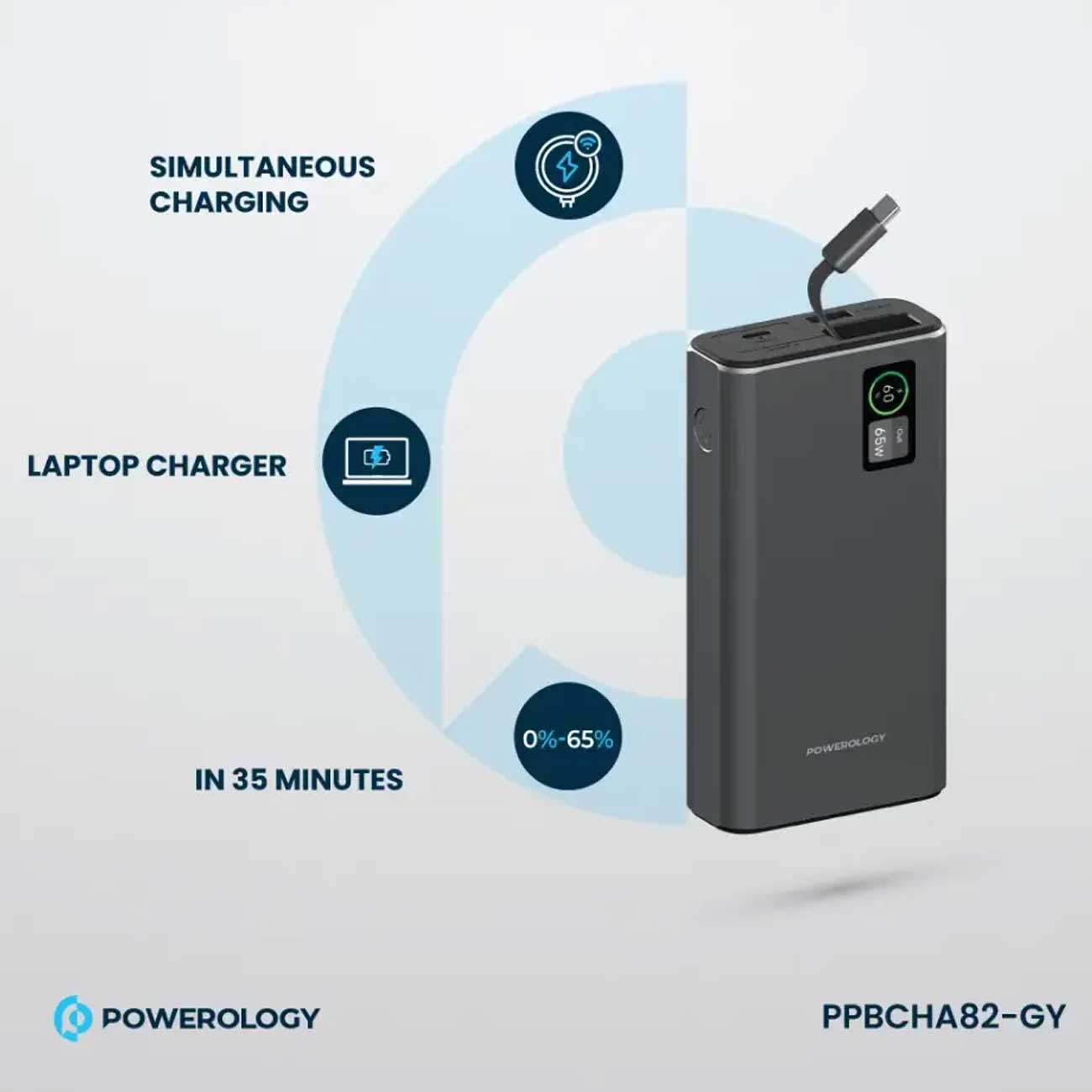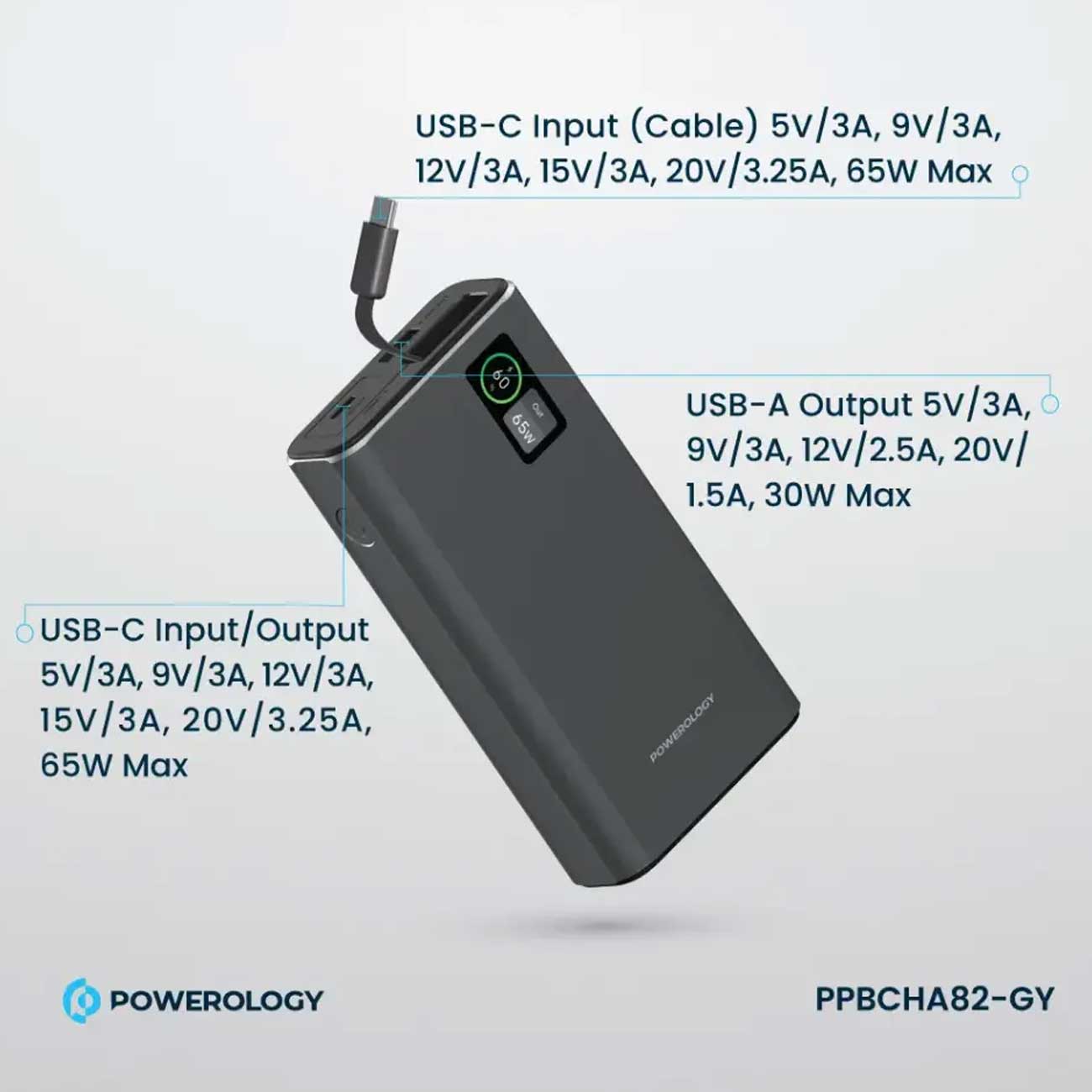 Powerology PPBCHA82-GY Aluminum 20000mAh Power Bank 65W