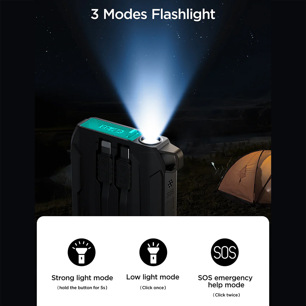 | قابلیتهای ویژه | شارژ ایمن با حفاظت چندگانه، دارای چراغ قوه، زنگ هشدار اضطراری SOS، کابل تایپ سی و لایتنینگ متصل به بدنه |