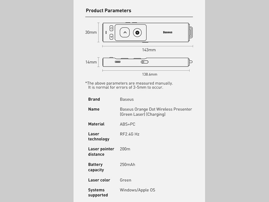 | مشخصات پوینتر و پرزنتر شارژی بیسوس Baseus Wireless Presenter (Charging) WKCD010013 | |
