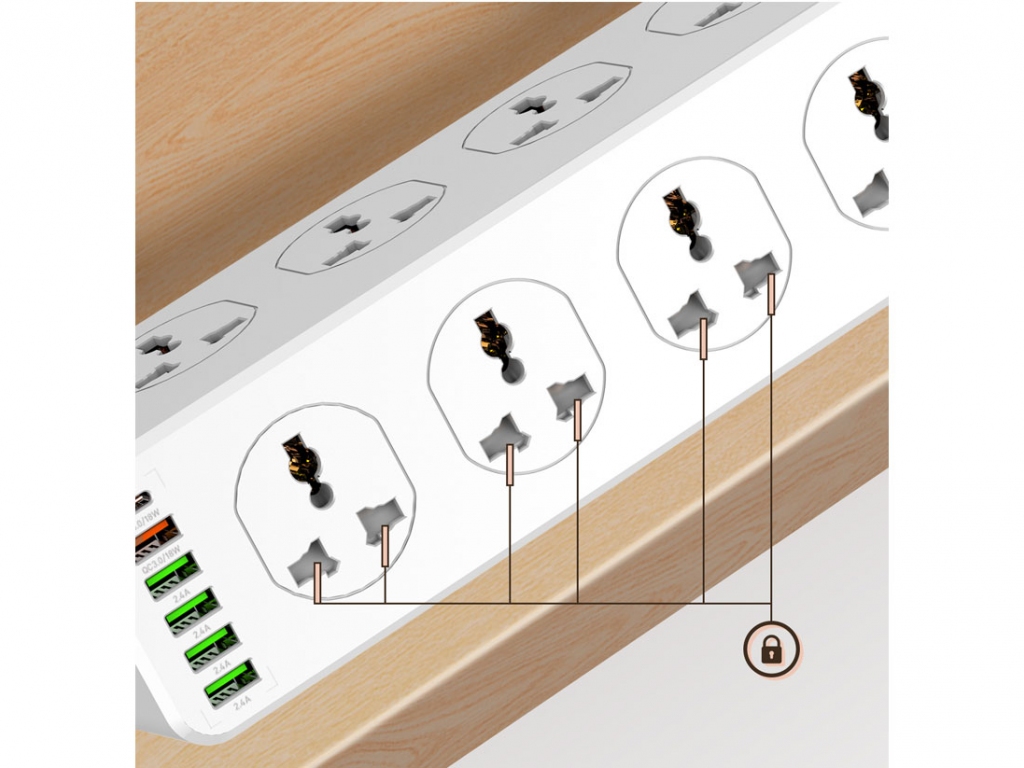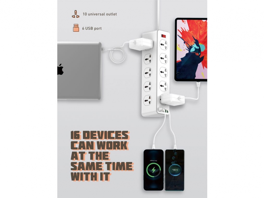 چندراهی برق 10 سوکت، 5 یواسبی و 1 تایپسی الدنیو SC10610