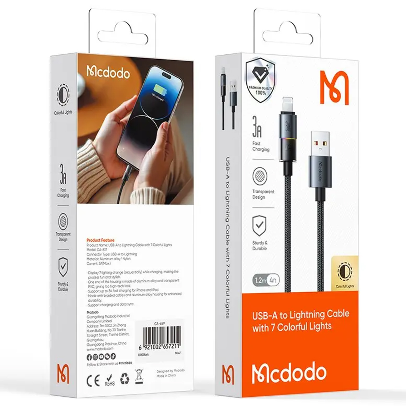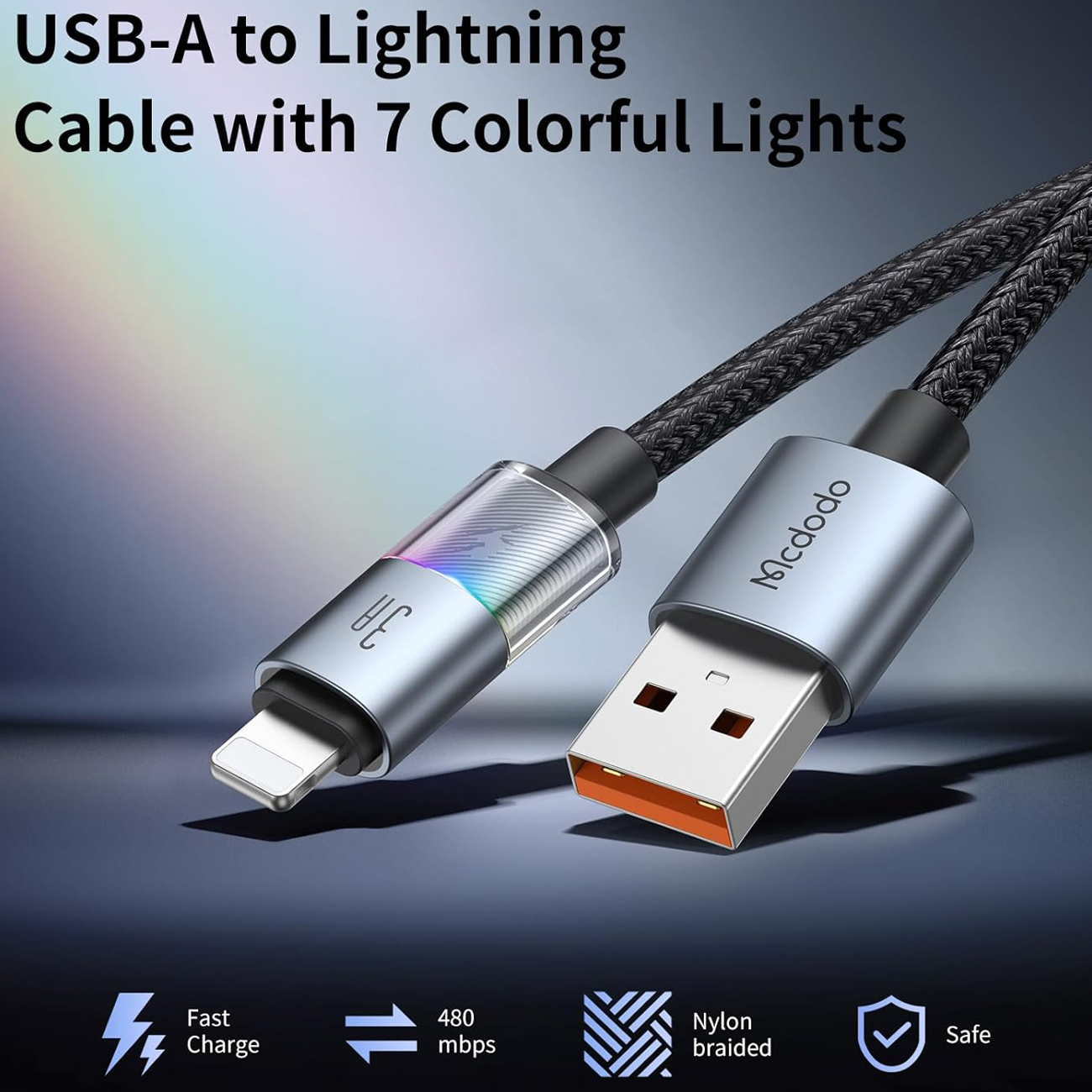 Mcdodo CA-8170 USB-A to Lightning RGB Cable with 7 Color Lights & 3A Fast Charging