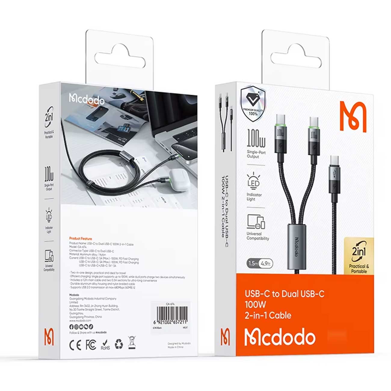 کابل تایپسی به دو تایپسی 100 وات 5 آمپر 1.5 متری مکدودو MCDODO CA-6740
