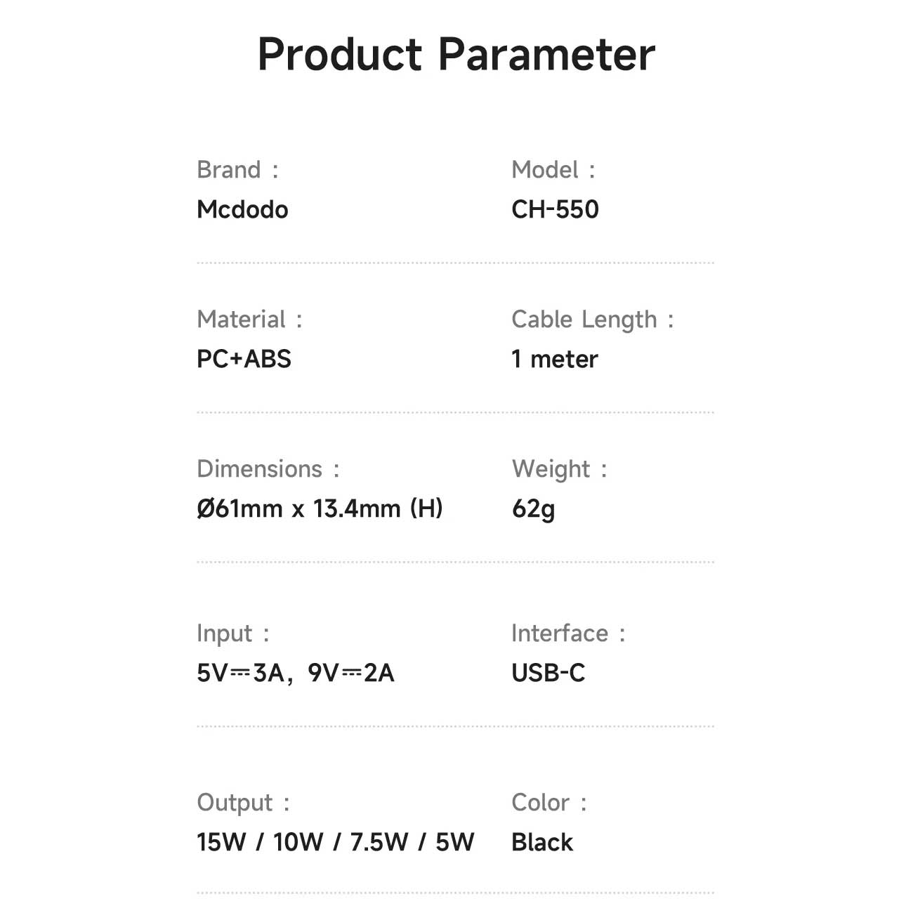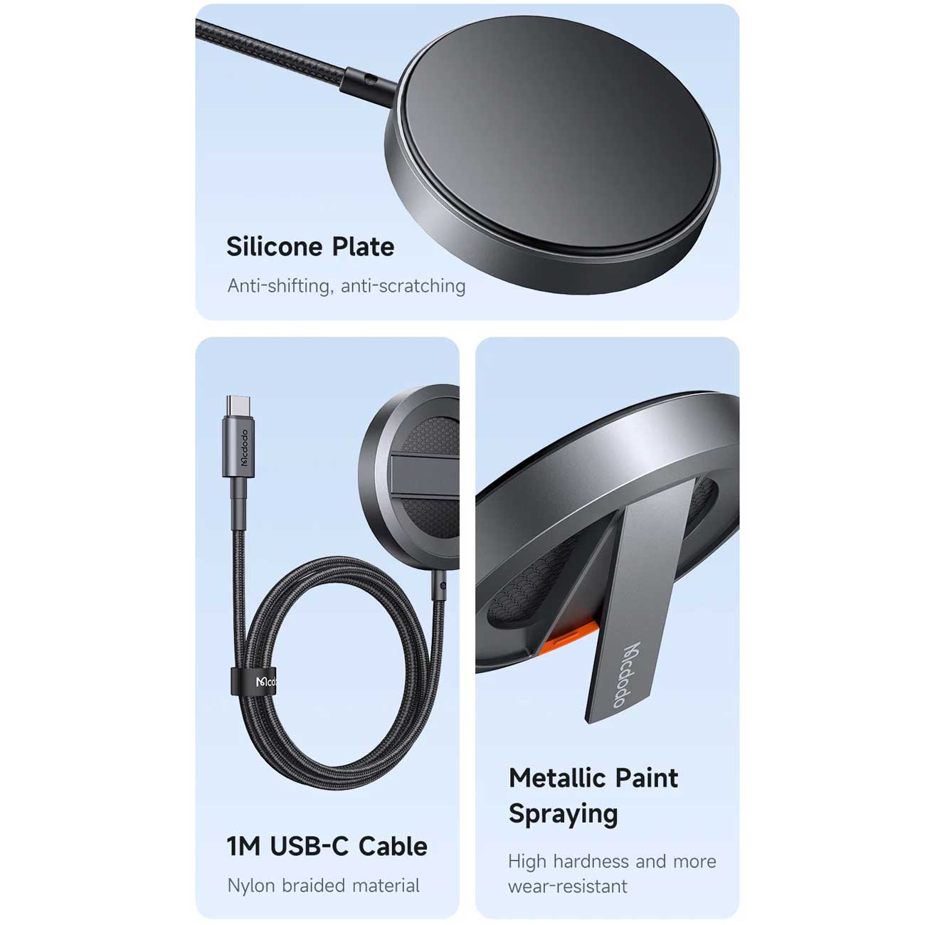 شارژر وایرلس مگنتی 15 وات و هولدر موبایل رومیزی مکدودو CH-550